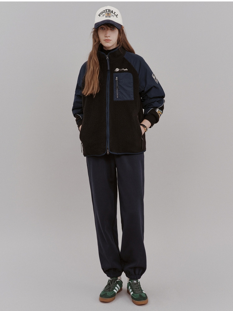 外套女春秋摇粒绒拼接休闲立领外套上衣女 107969