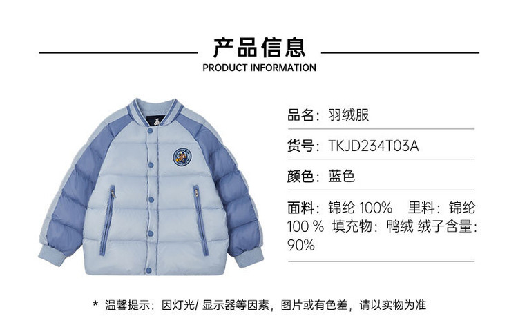 商品名称:【短款保暖羽绒】小熊童装秋冬男童拼接撞色面包式羽绒服 368129
