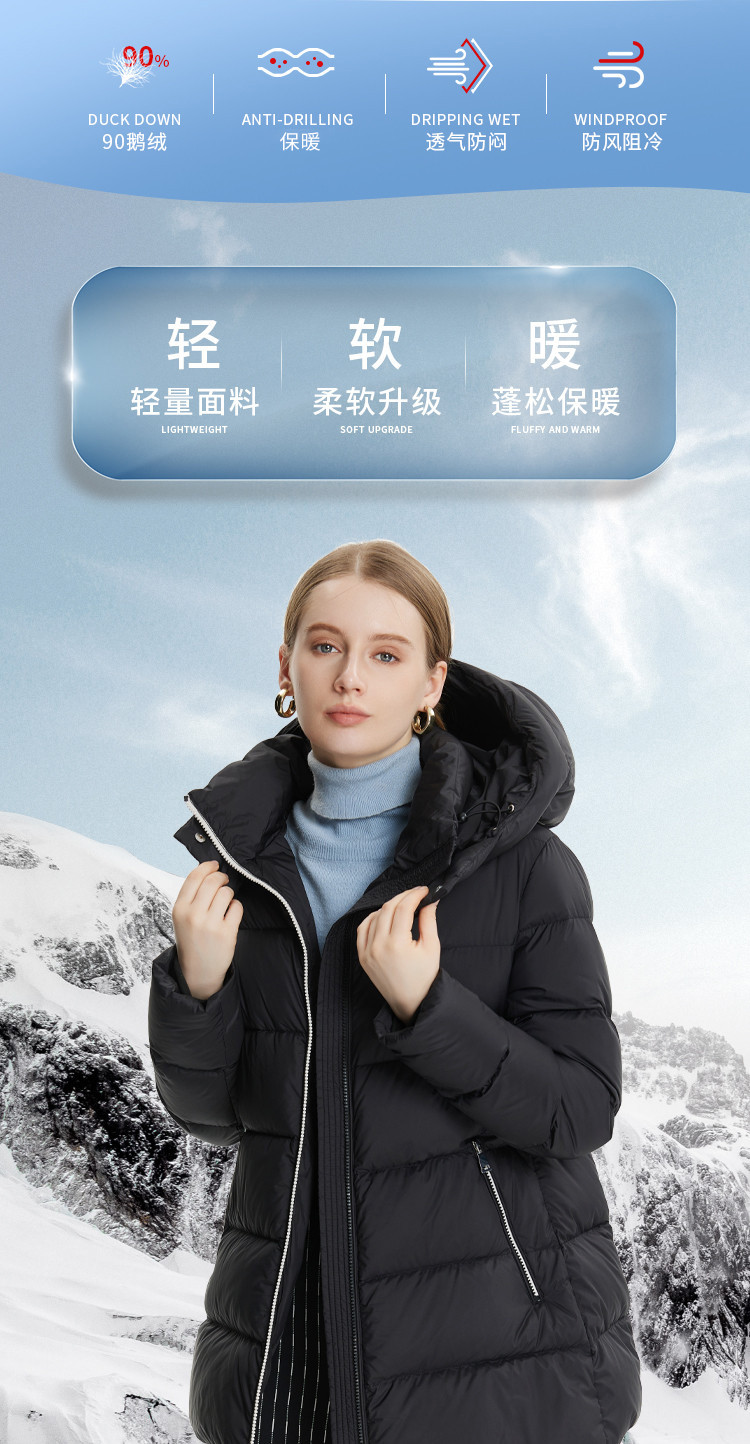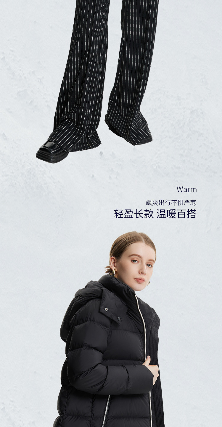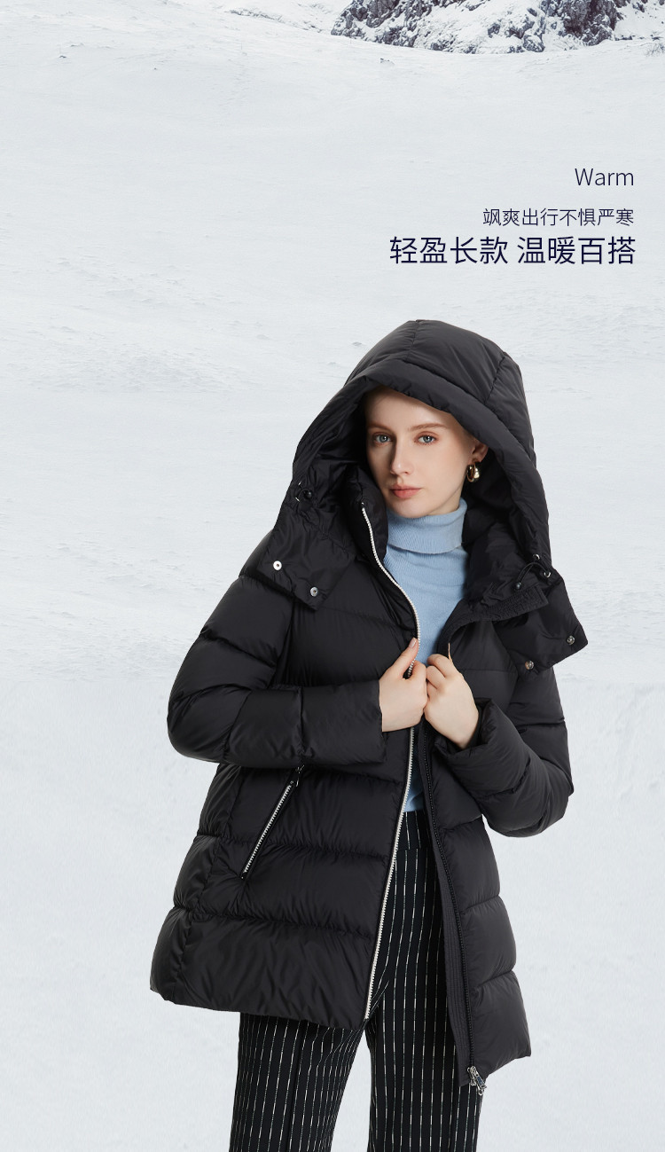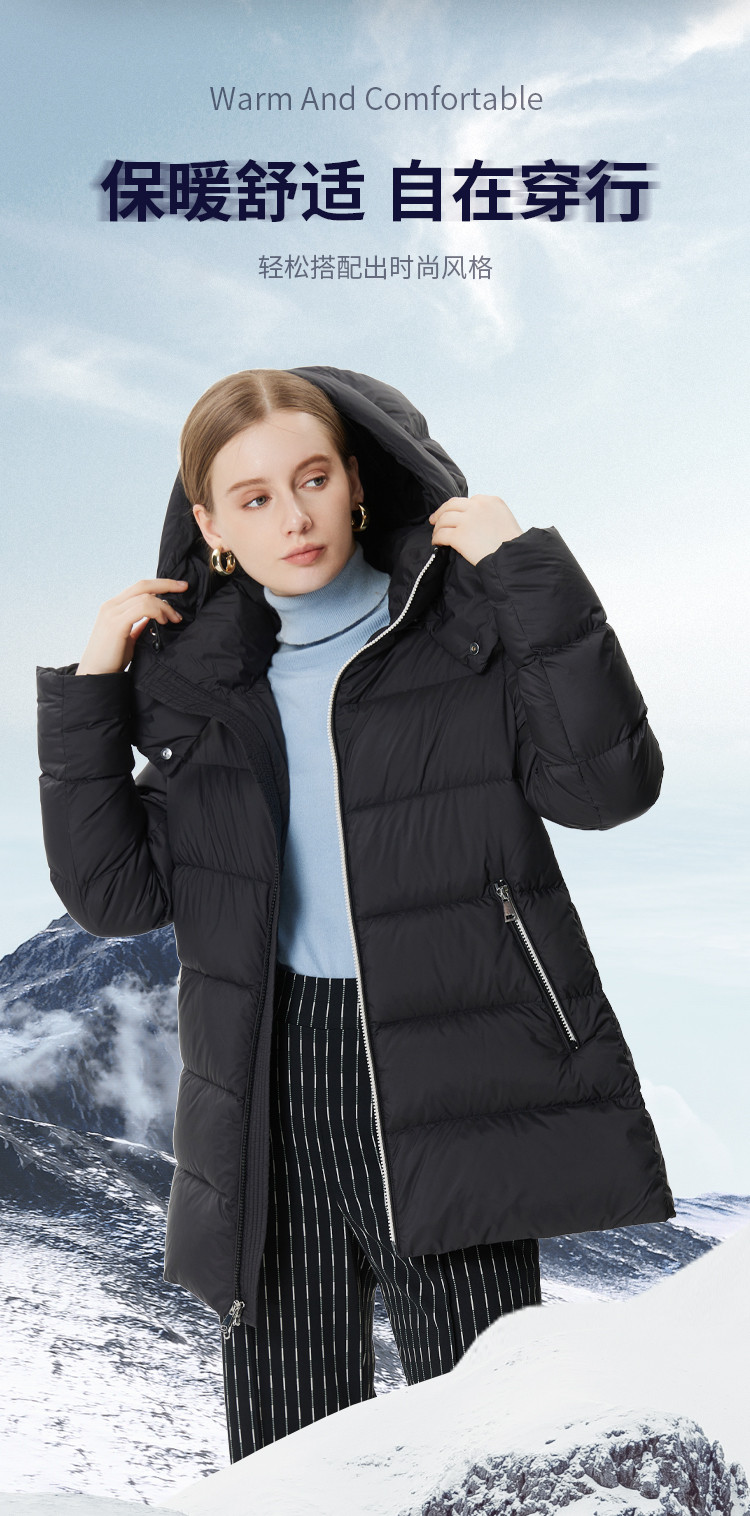 商品名称:【鹅绒】莫兰迪色系休闲H版带帽加厚保暖修身羽绒服 360095