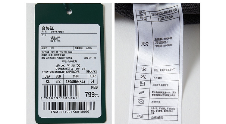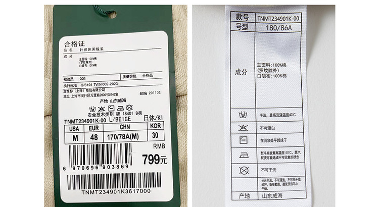 商品名称:小熊男装夏季裤子运动针织束脚卫裤休闲裤运动裤男夏季薄款 031297