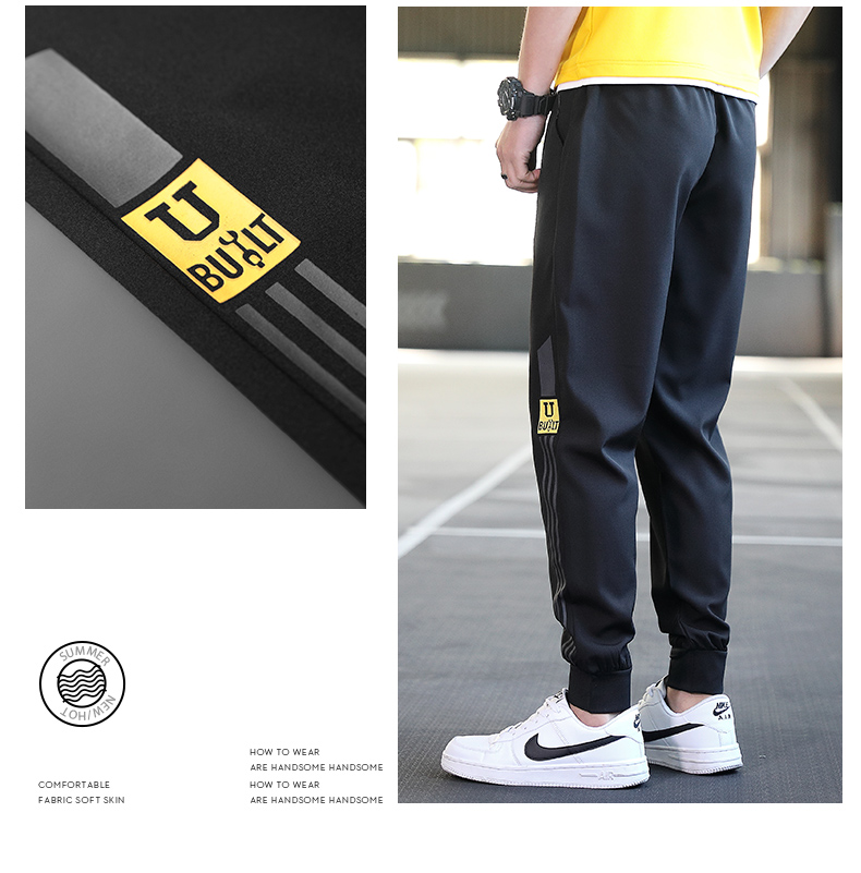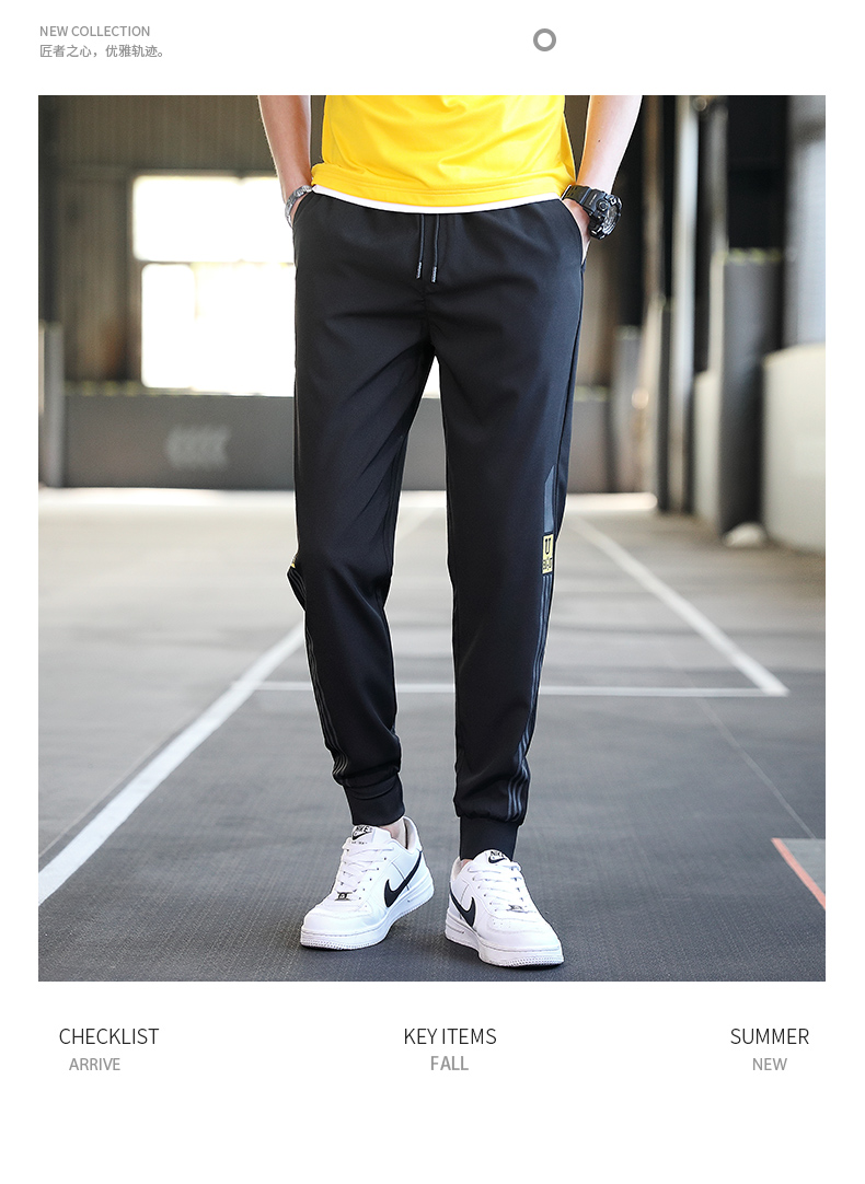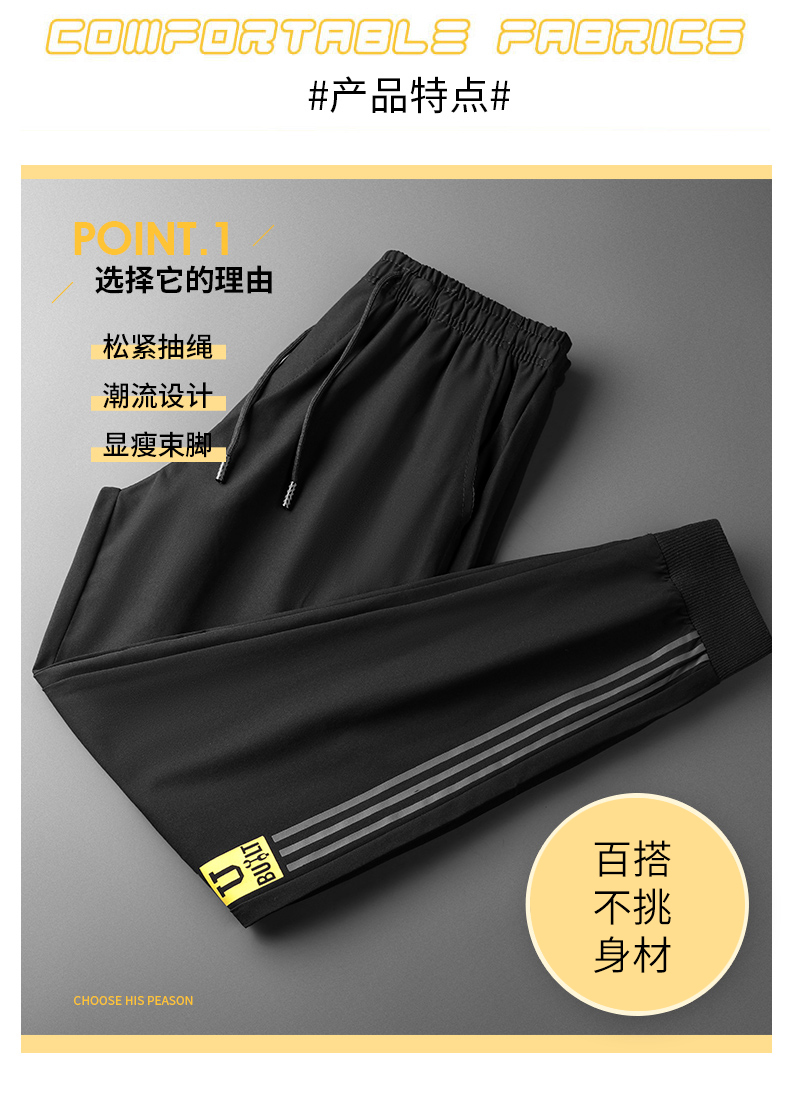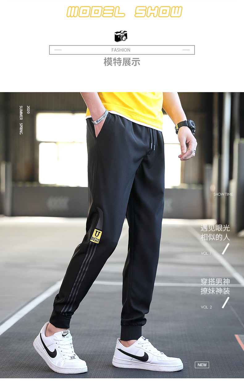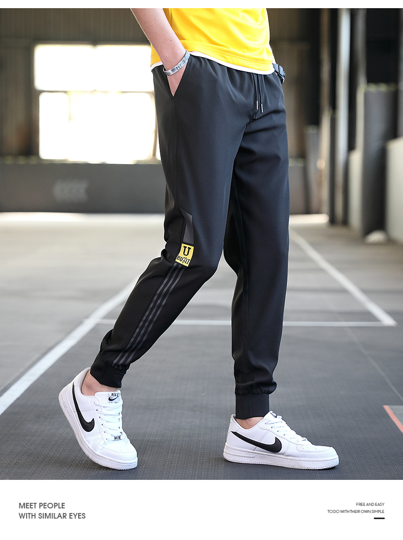 商品名称:曼西尔奴男士时尚锦纶冰丝速干柔软亲肤舒适百搭字母印花束脚休闲裤115236TM