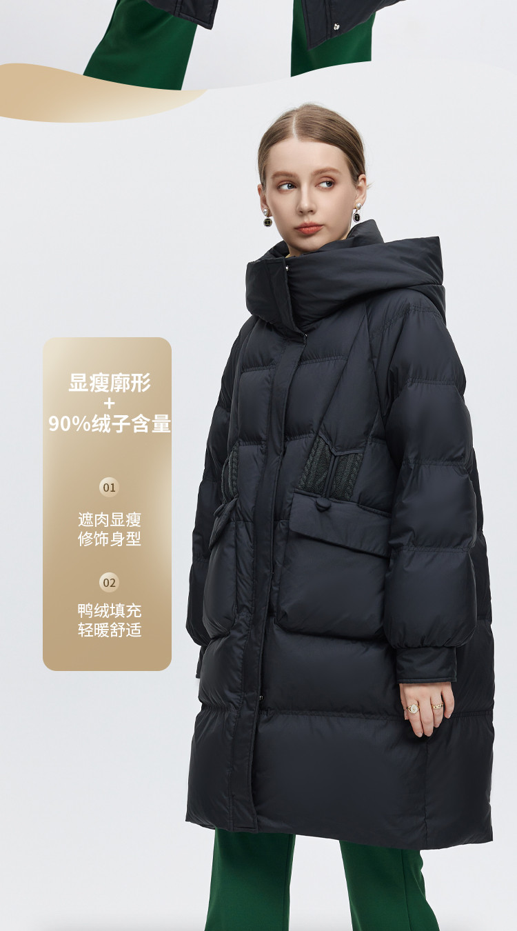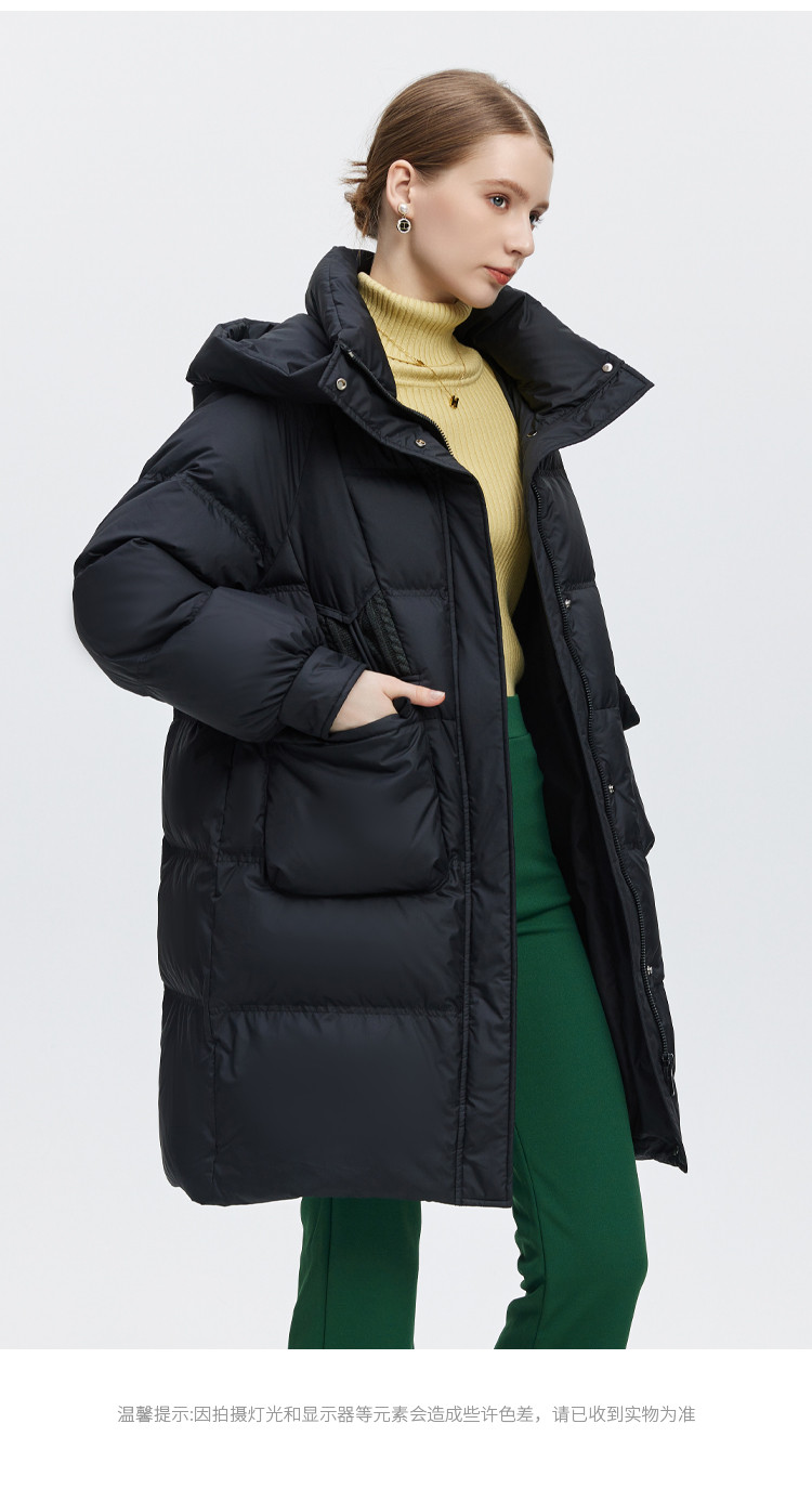 商品名称:秋冬中长款韩版宽松休闲防风保暖舒适通勤女式羽绒服 329311