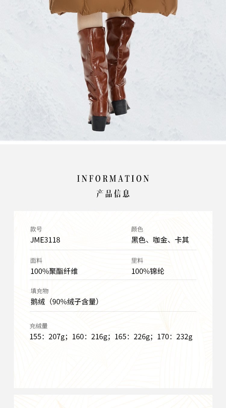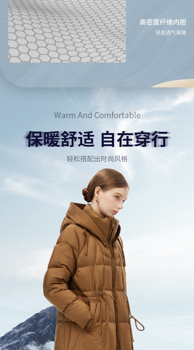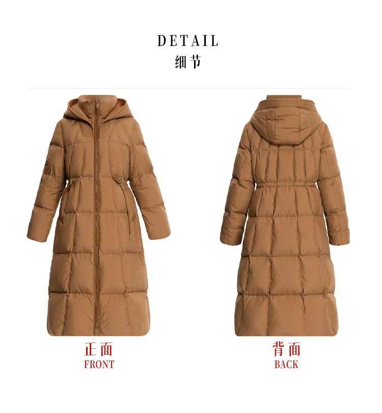 商品名称:【鹅绒】气质商务风腰绳收腰女式连帽保暖长款羽绒服 629215