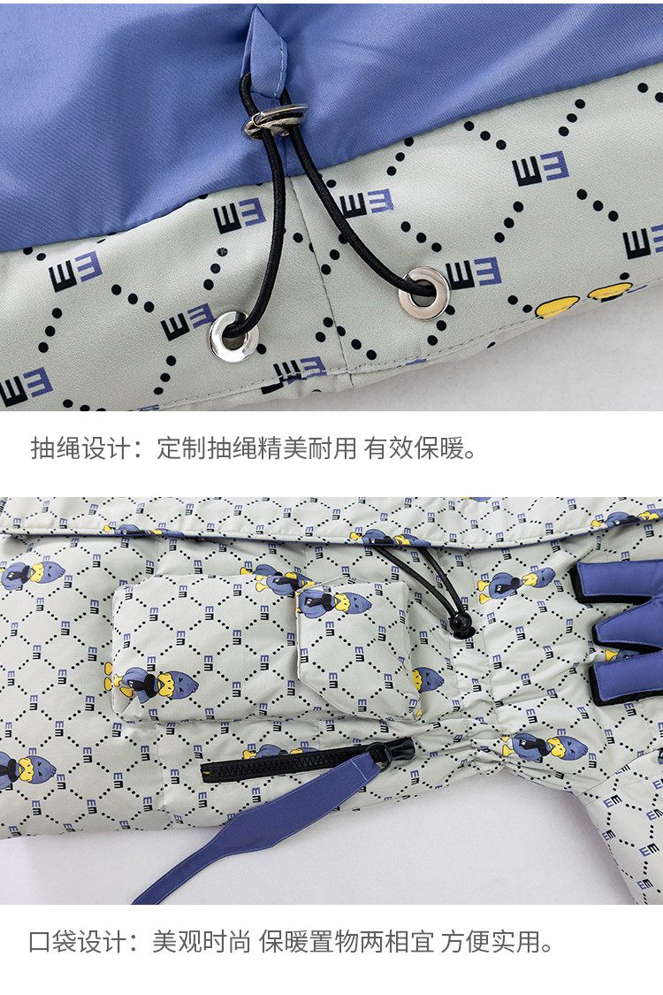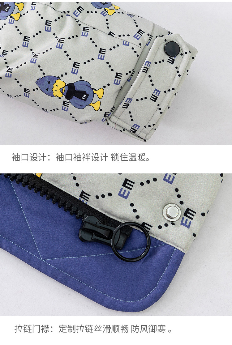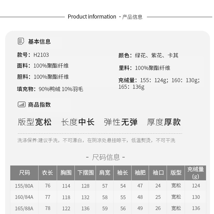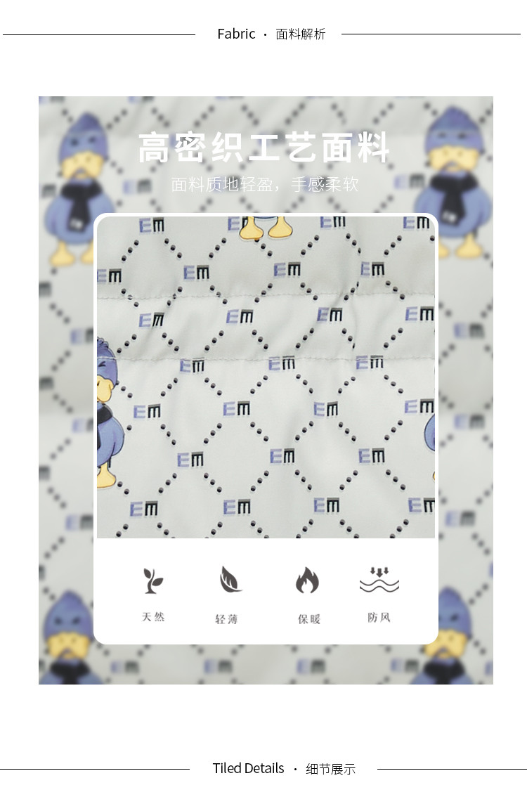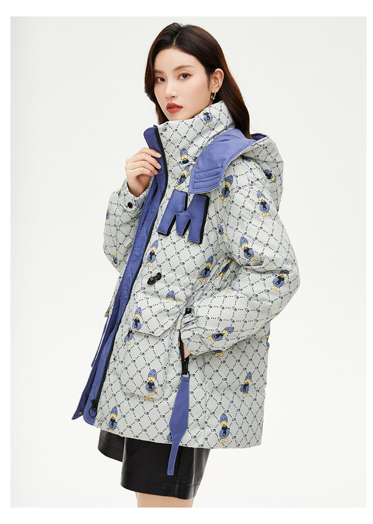 商品名称:休闲印花户外运动风女士冬季中长款带帽宽松羽绒服 303327