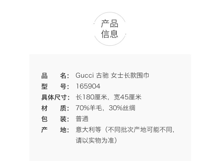 商品名称:GUCCI 女士羊毛真丝围巾 165904 165904 3G646 1264
