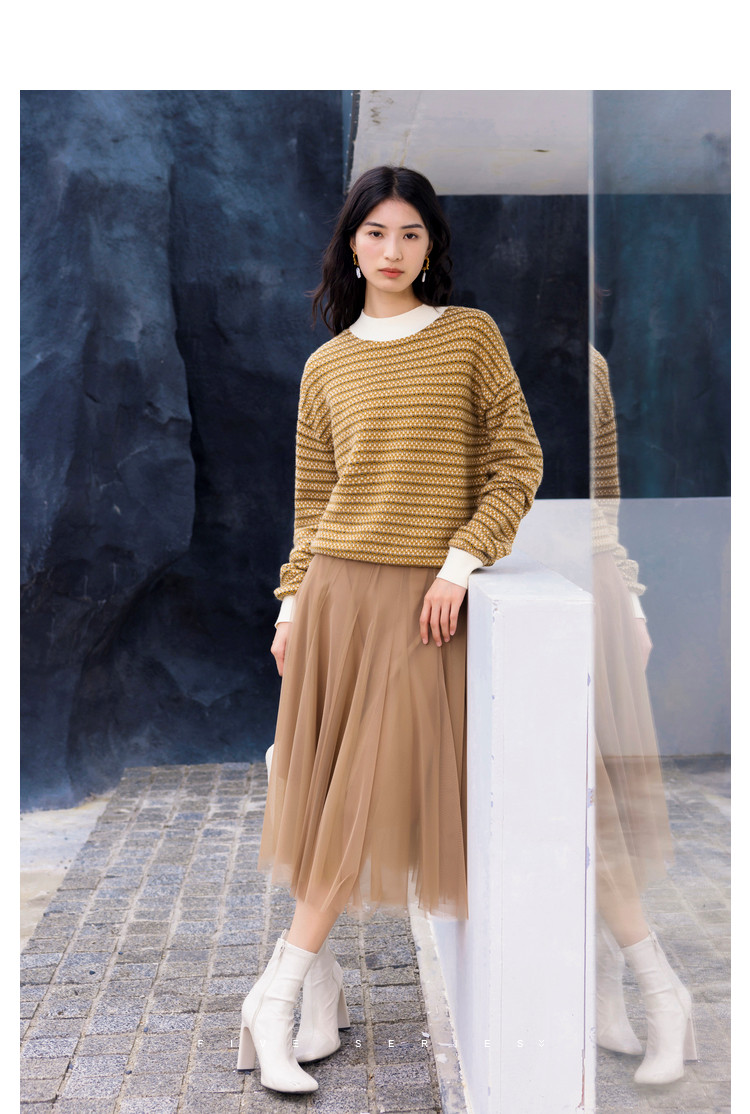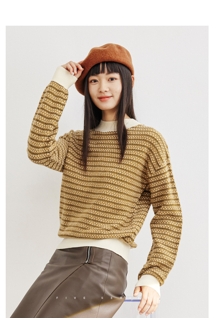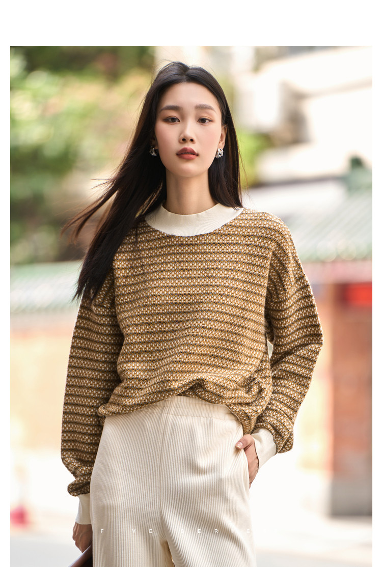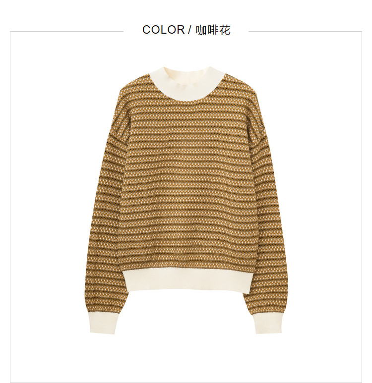 时尚撞色半高领毛衣女百搭休闲外穿慵懒风软糯套头针织衫女 602179