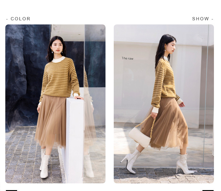 商品名称:时尚撞色半高领毛衣女百搭休闲外穿慵懒风软糯套头针织衫女 602179