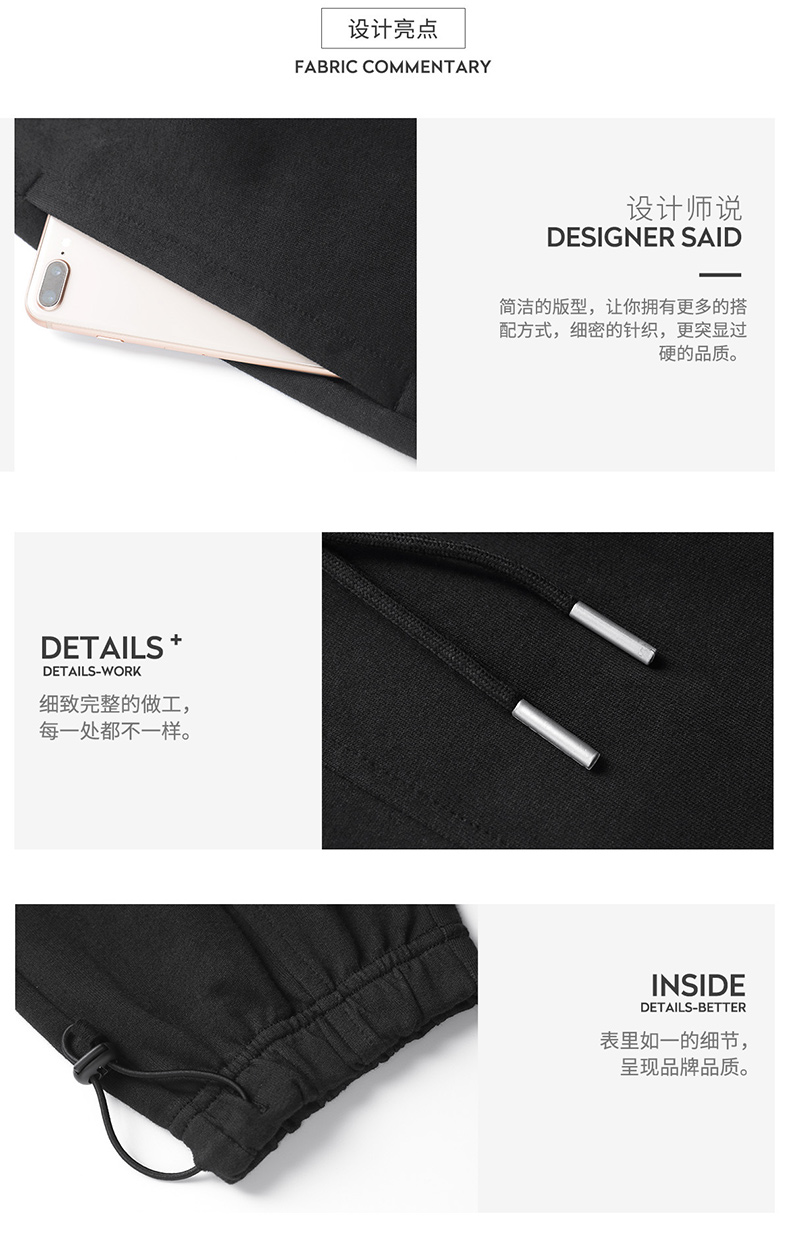 曼西尔奴男士纯棉抽绳束脚运动风休闲卫裤23152709TM