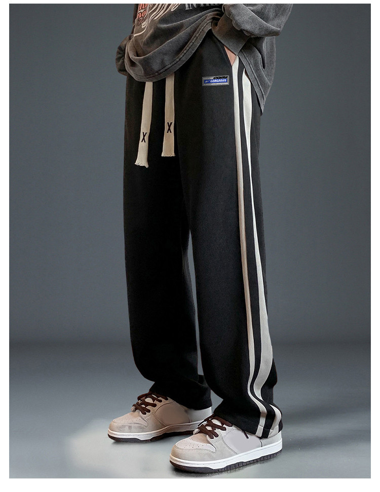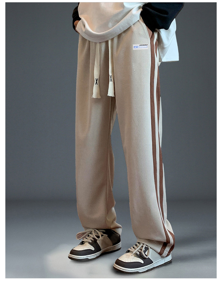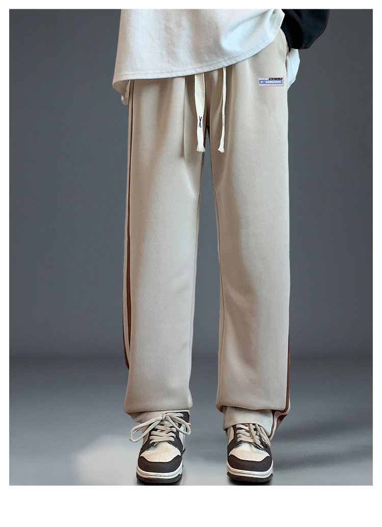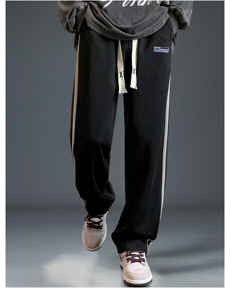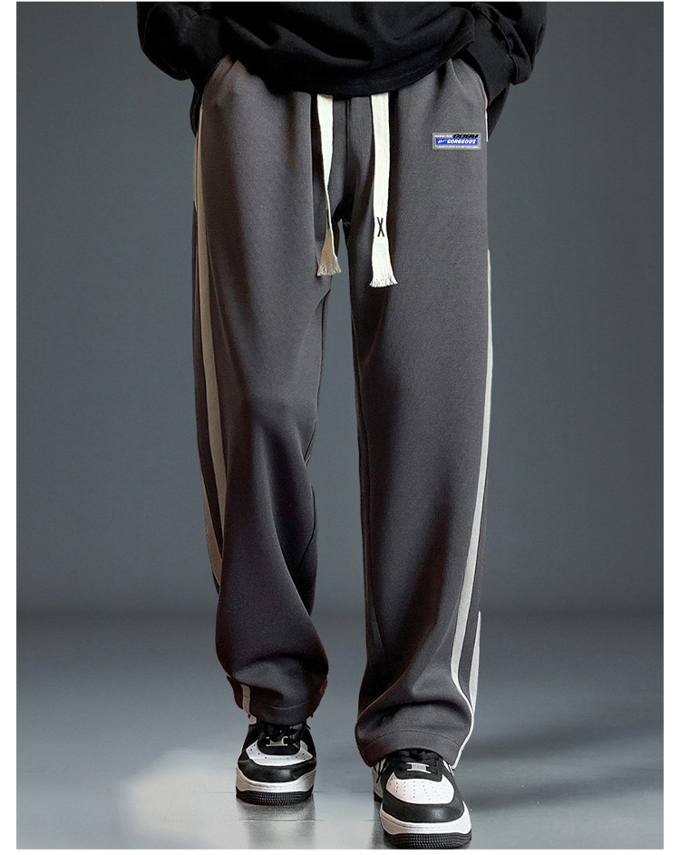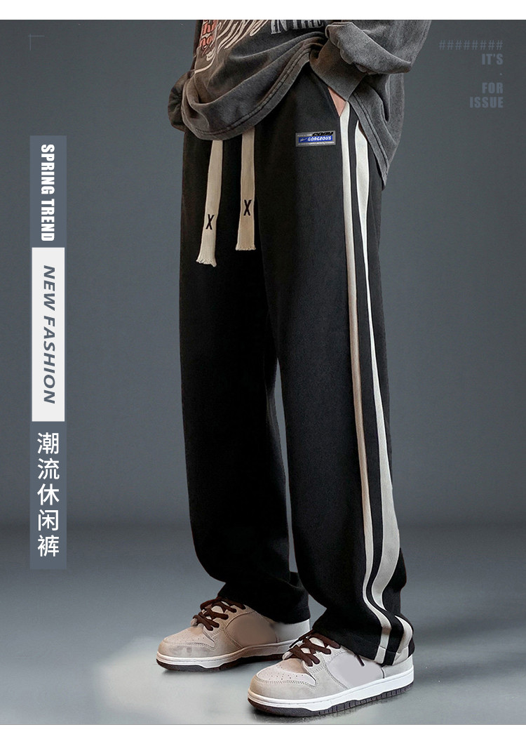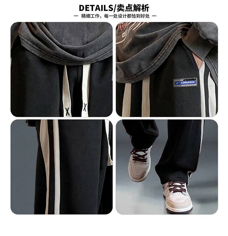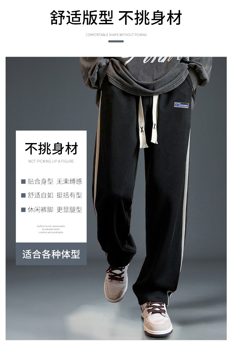 商品名称:休闲裤男春秋季青少年宽松直筒长裤子潮牌垂感阔腿裤抽绳运动裤男 194515