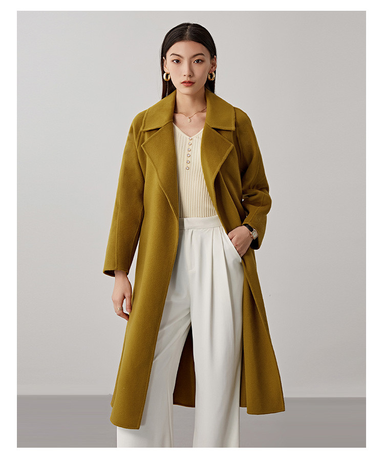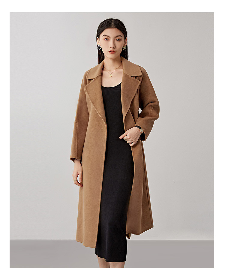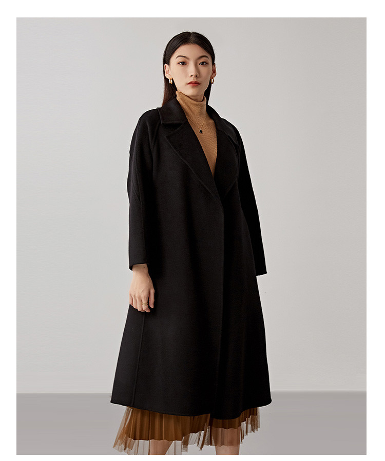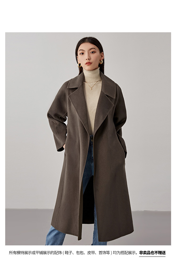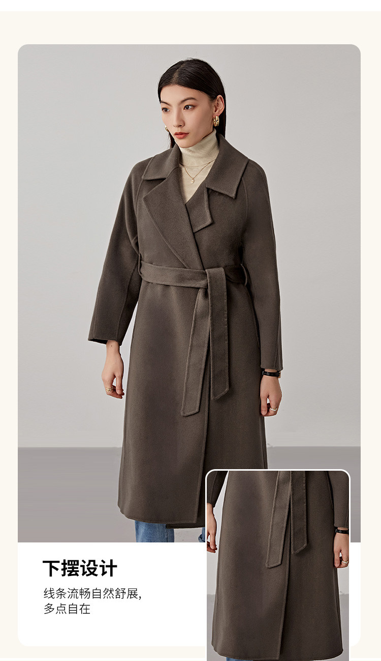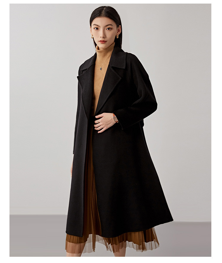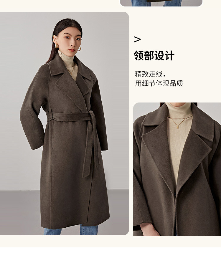 【含山羊绒】秋冬简约百搭羊毛羊绒大衣女式长款双面呢外套 925087