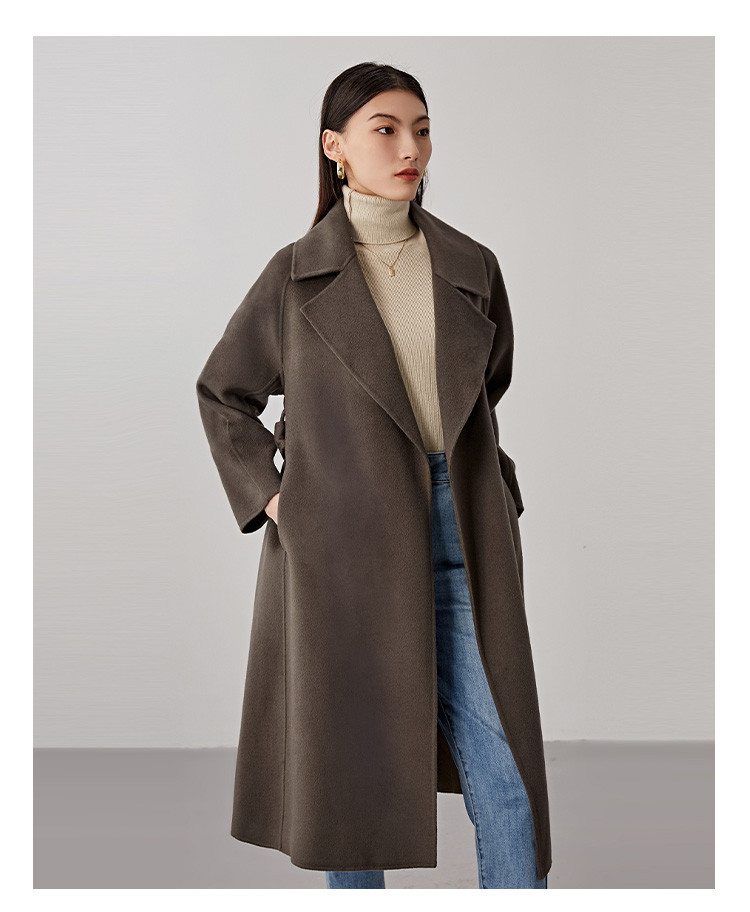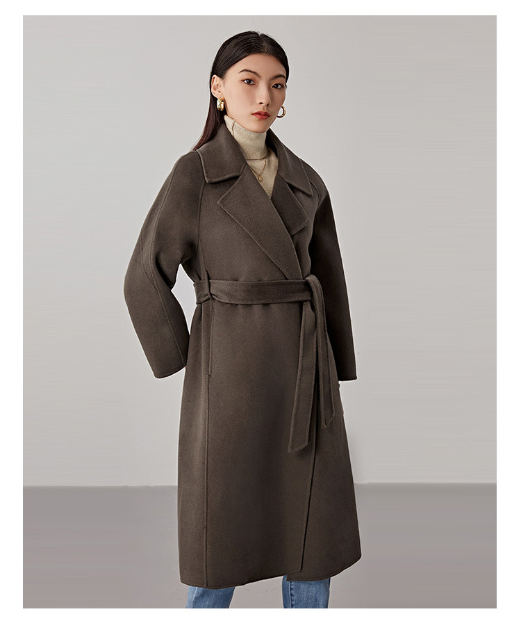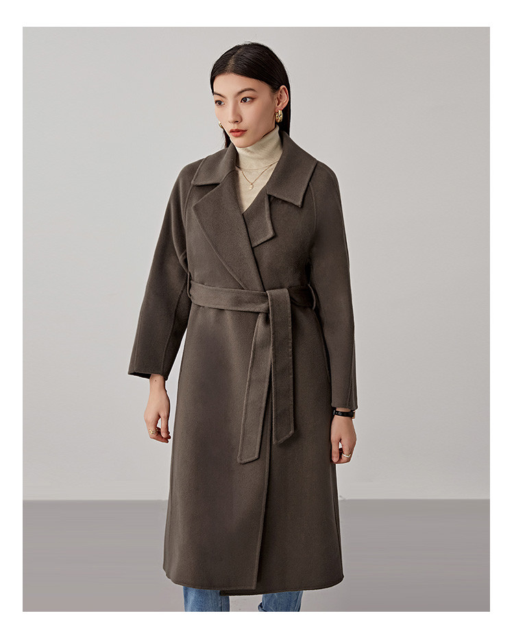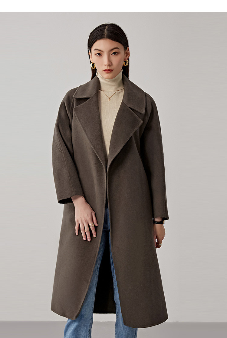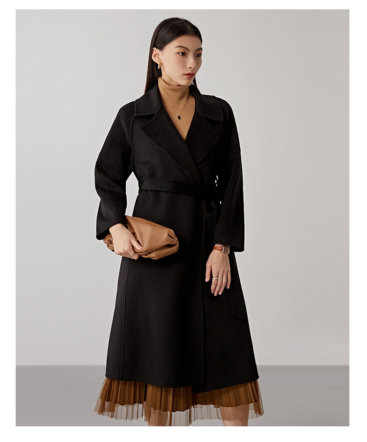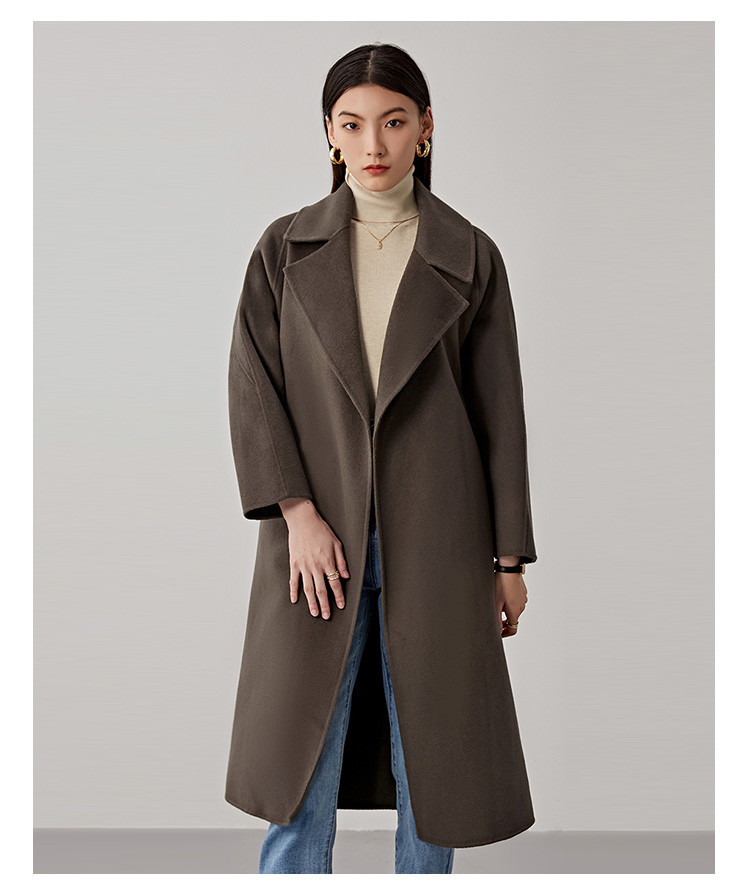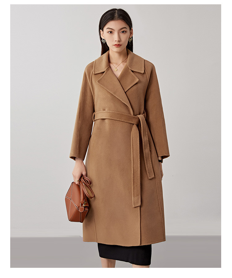 【含山羊绒】秋冬简约百搭羊毛羊绒大衣女式长款双面呢外套 925087