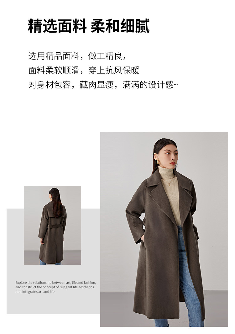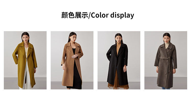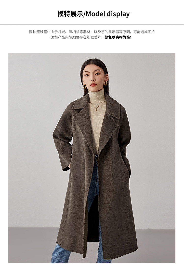 商品名称:【含山羊绒】秋冬简约百搭羊毛羊绒大衣女式长款双面呢外套 925087