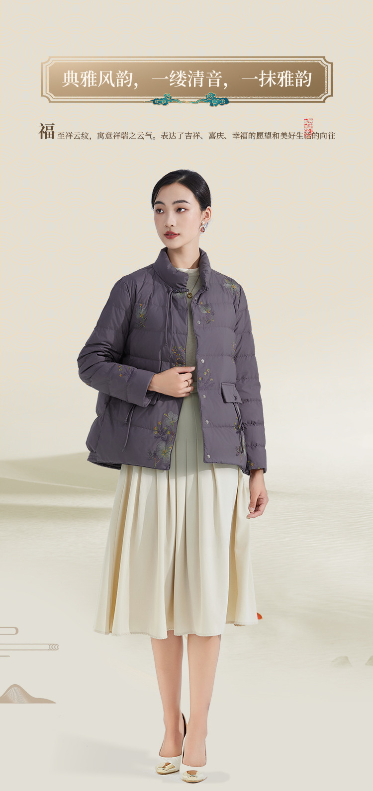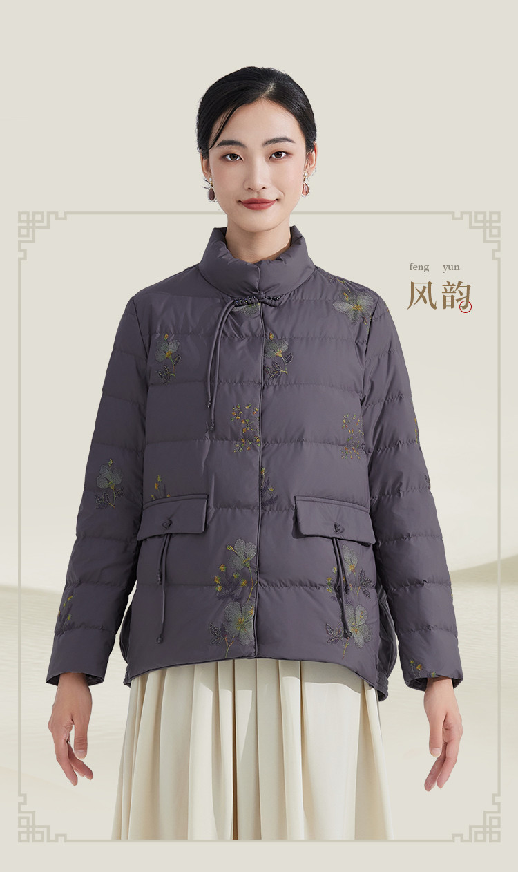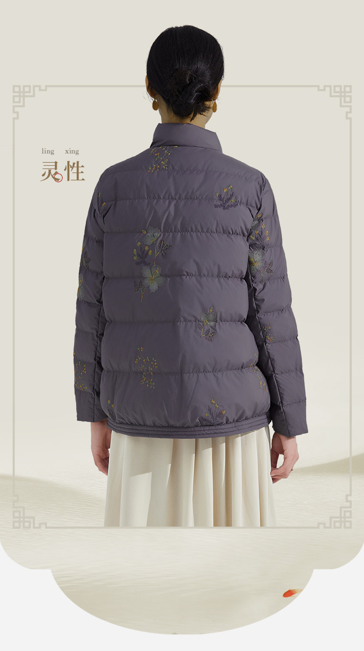 【鹅绒】知性新中式女式舒适立领轻薄修身妈妈装鹅绒服 797215