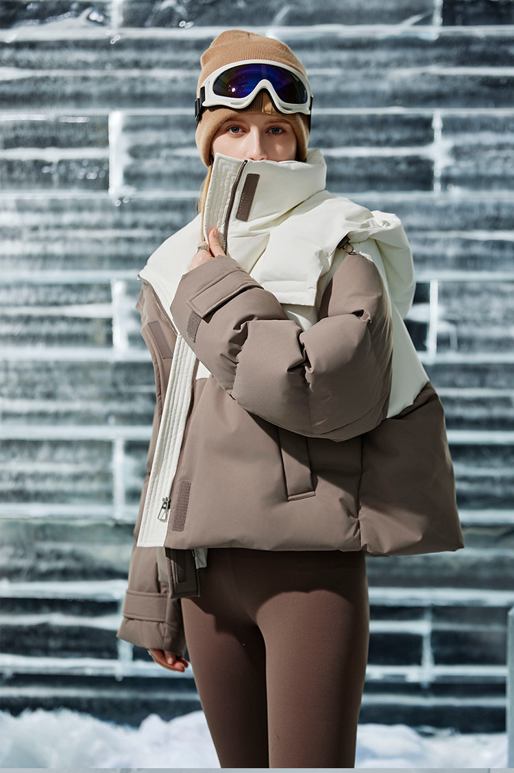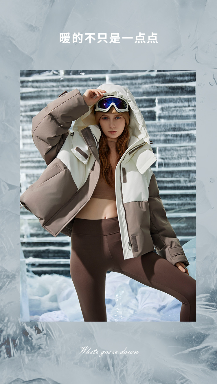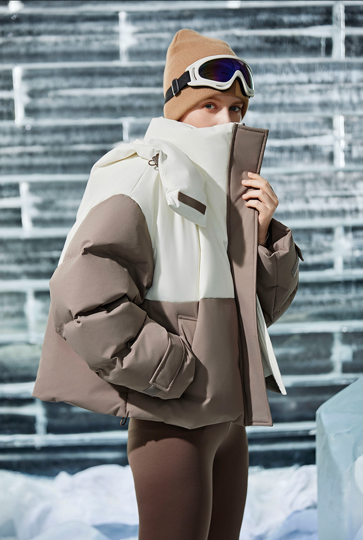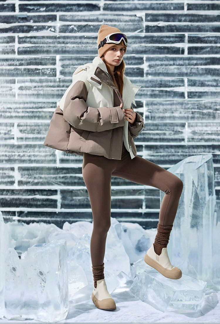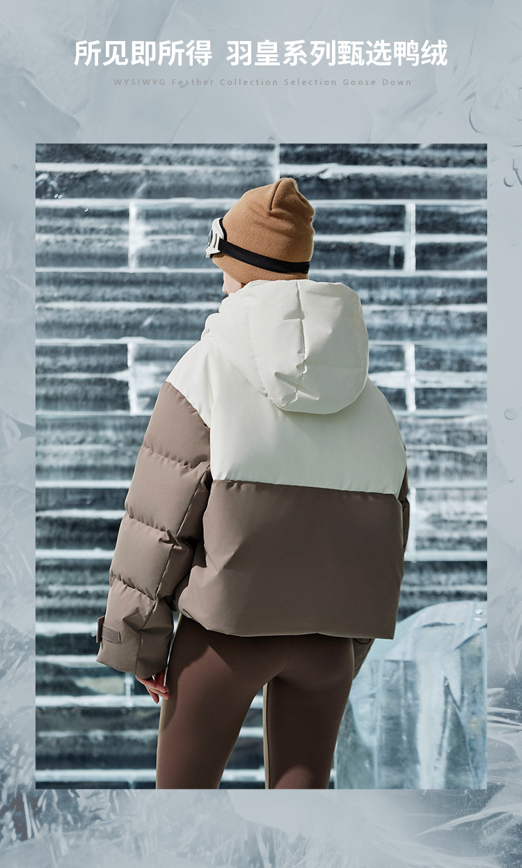 商品名称:女式韩版厚款保暖连帽面包服宽松短款拼色羽绒服 717919