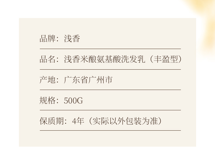 商品名称:浅香 米酿氨基酸洗发乳 500g