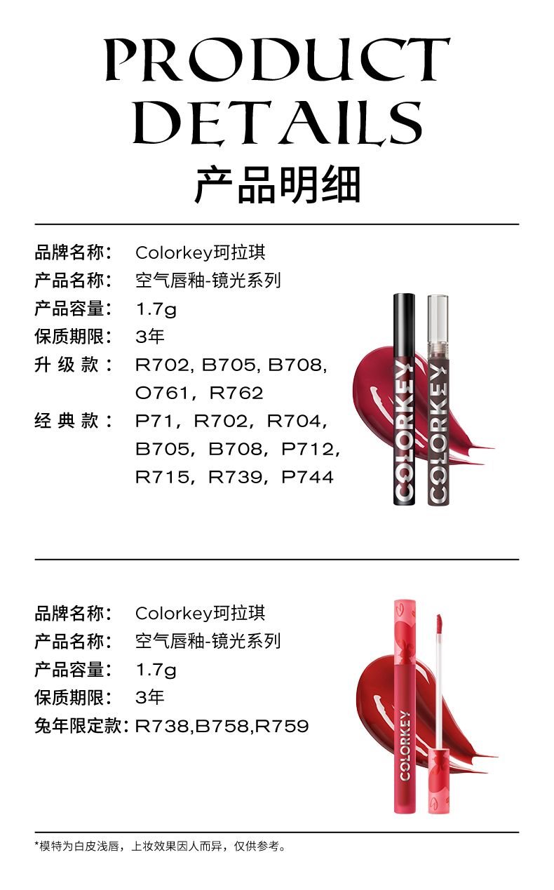 商品名称:Colorkey/珂拉琪 空气唇釉镜光系列2.0 1.7g