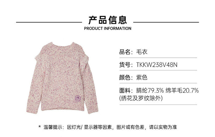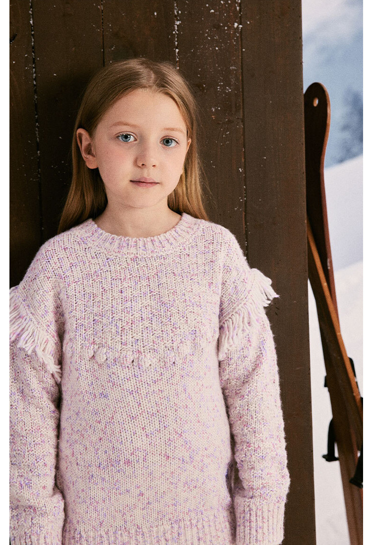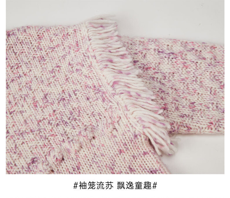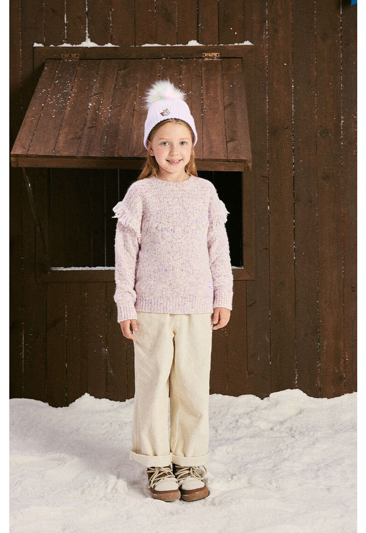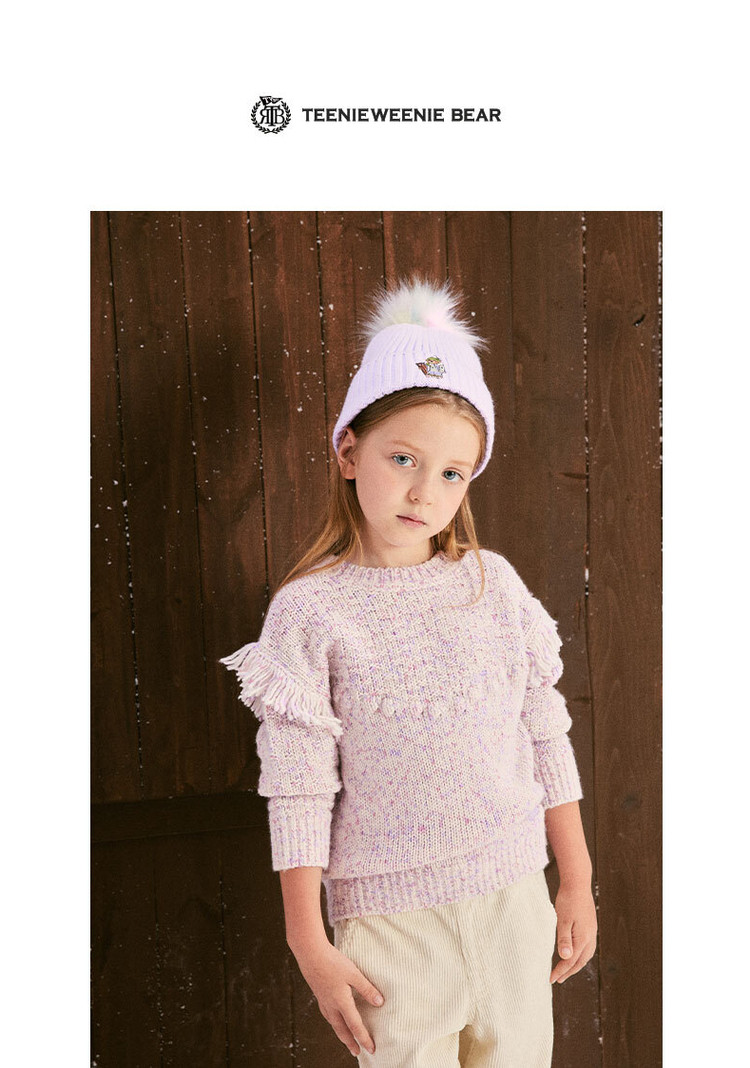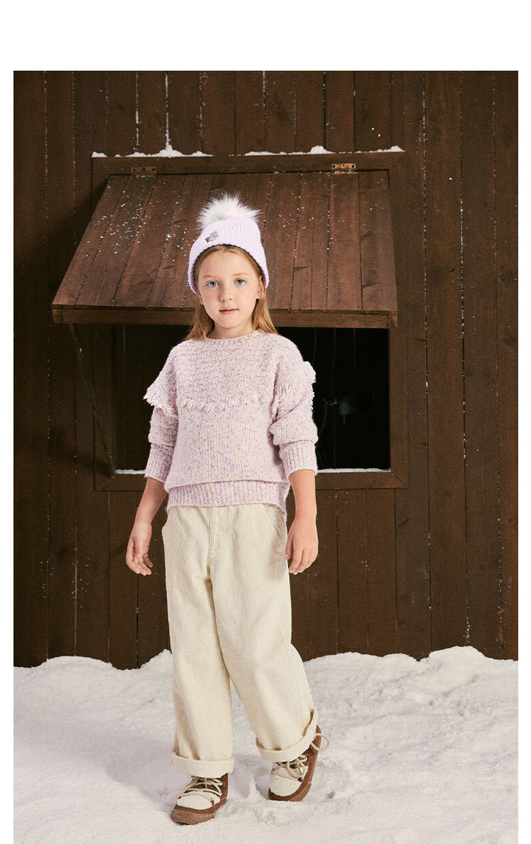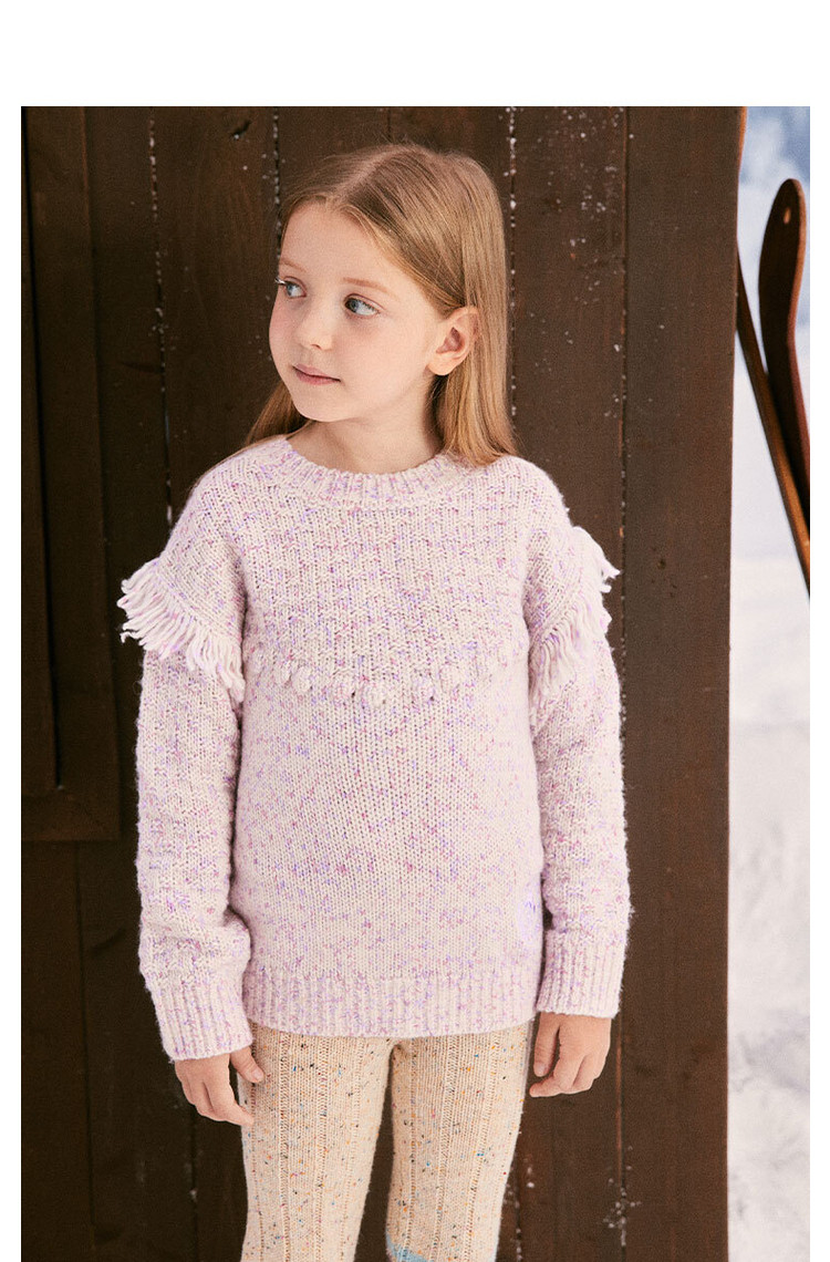 商品名称:小熊童装秋冬女童提花流苏套头针织毛衣 079233