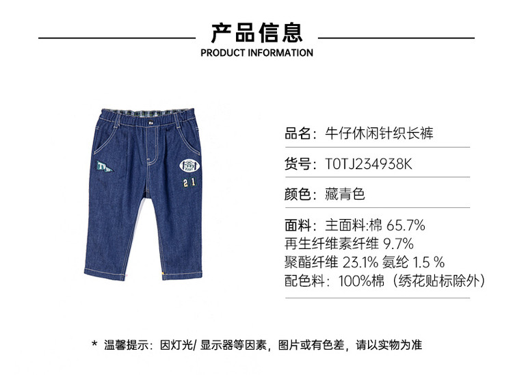 商品名称:【牛仔裤】小熊童装春季男宝宝牛仔休闲针织长裤 664513