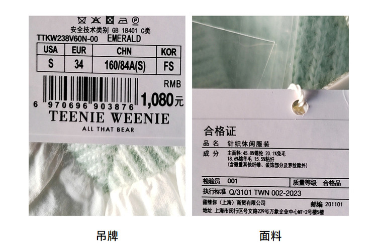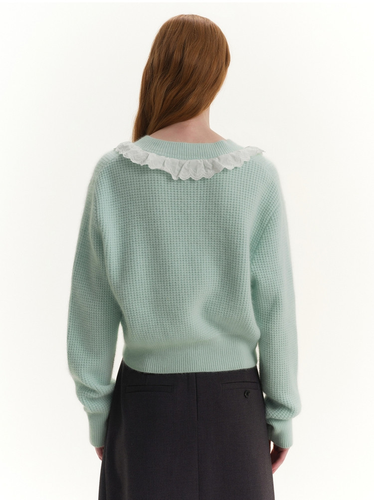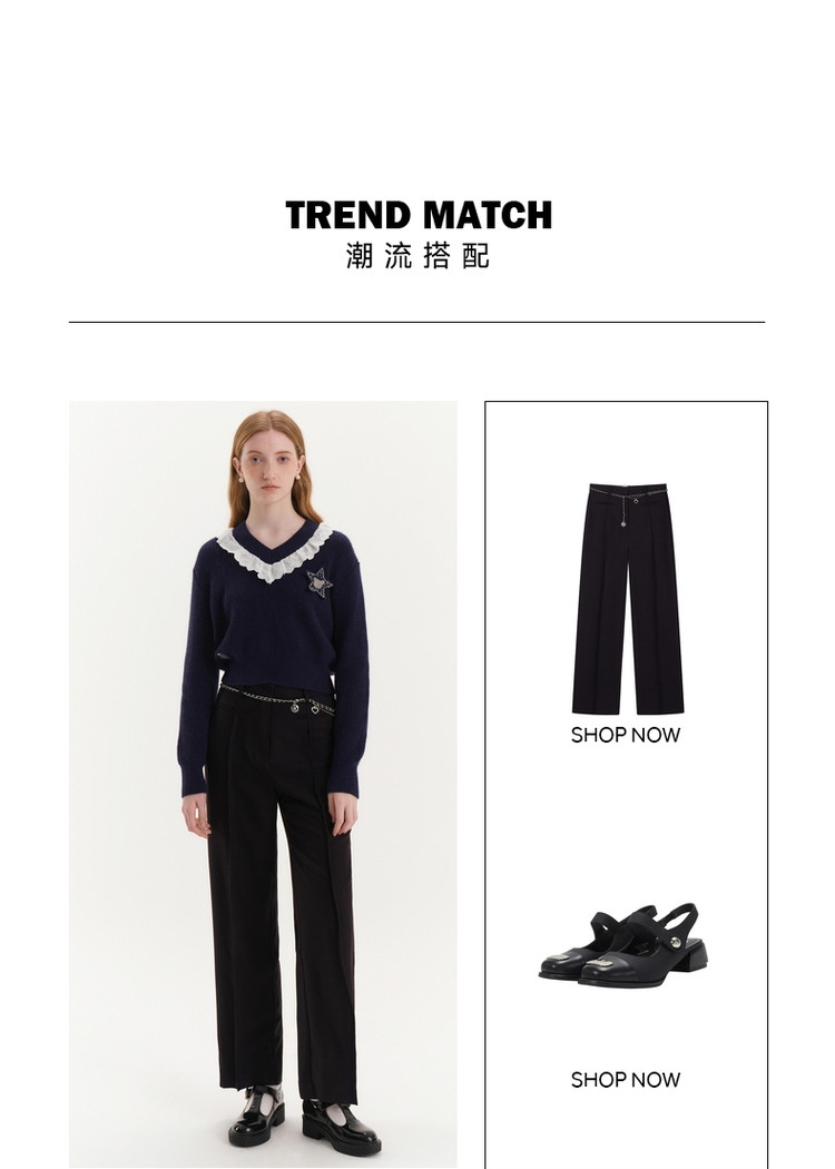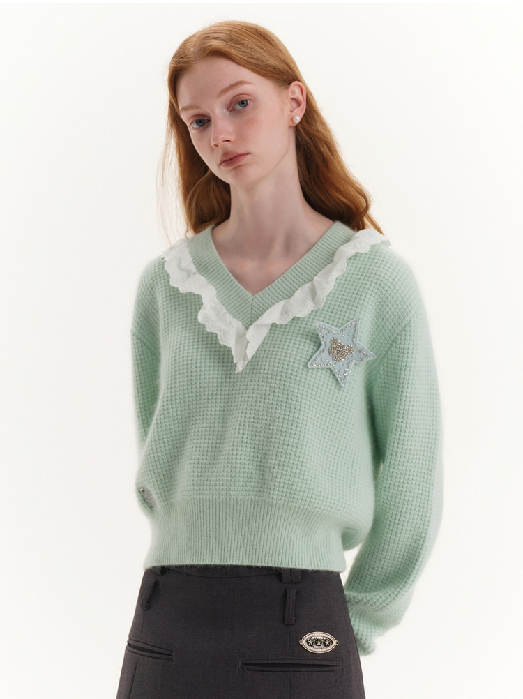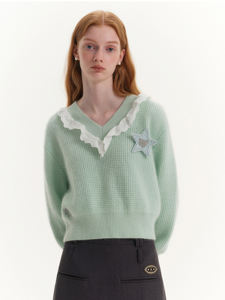 商品名称:小熊春秋款蕾丝边撞色V领套头衫毛衣针织衫女士 864321