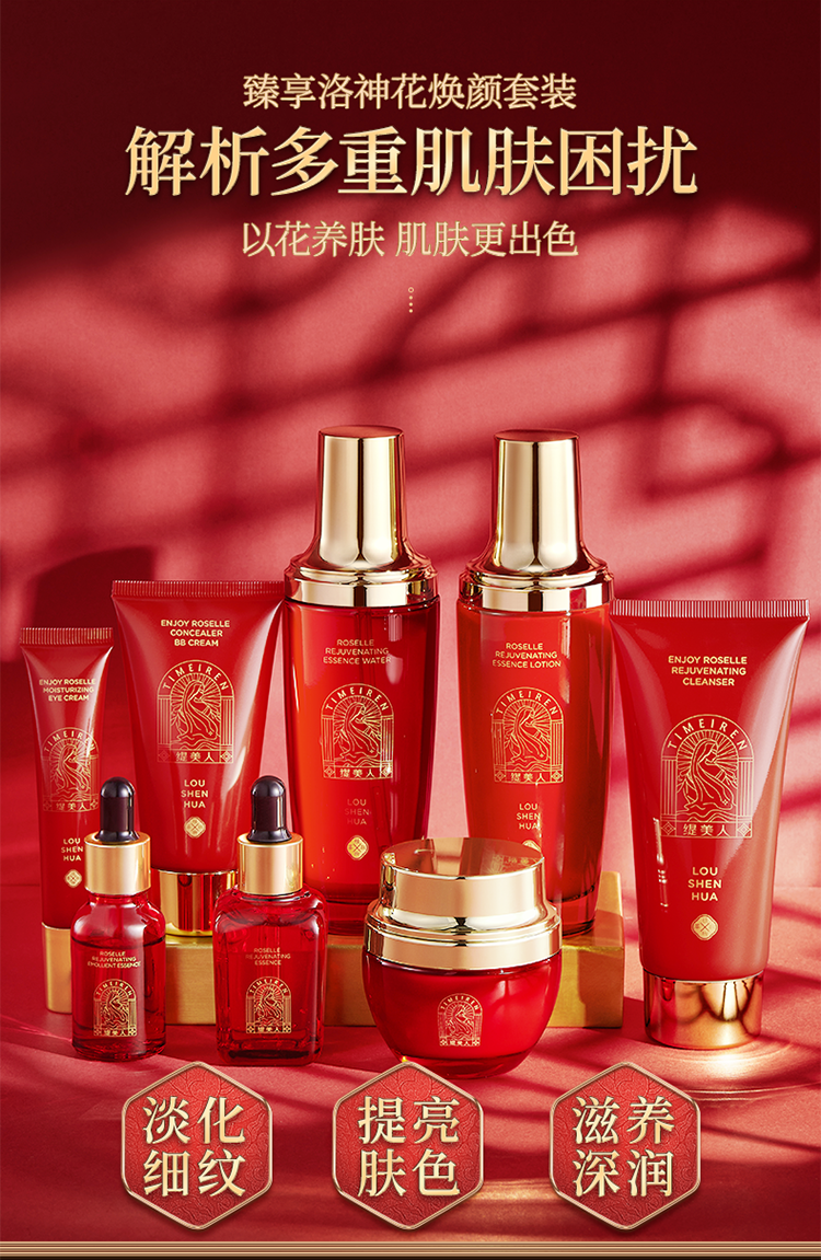 商品名称:缇美人 臻享洛神花焕颜套装补水保湿控油清洁水乳十二件护肤品 臻享洛神花焕颜套装