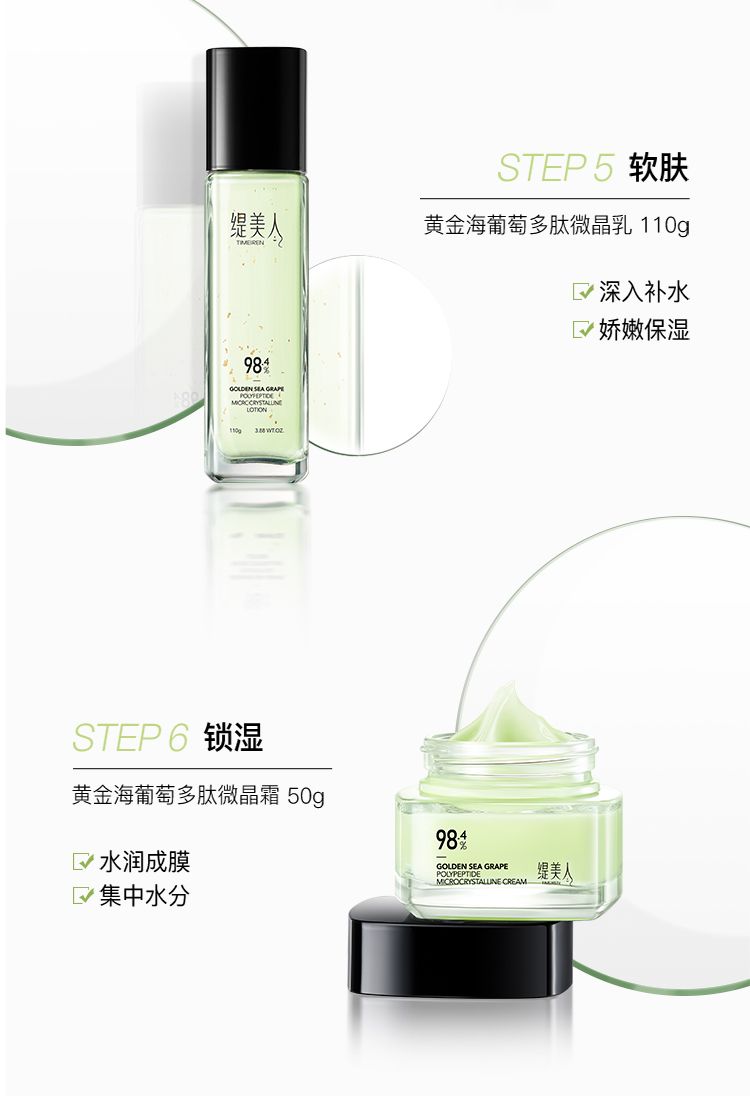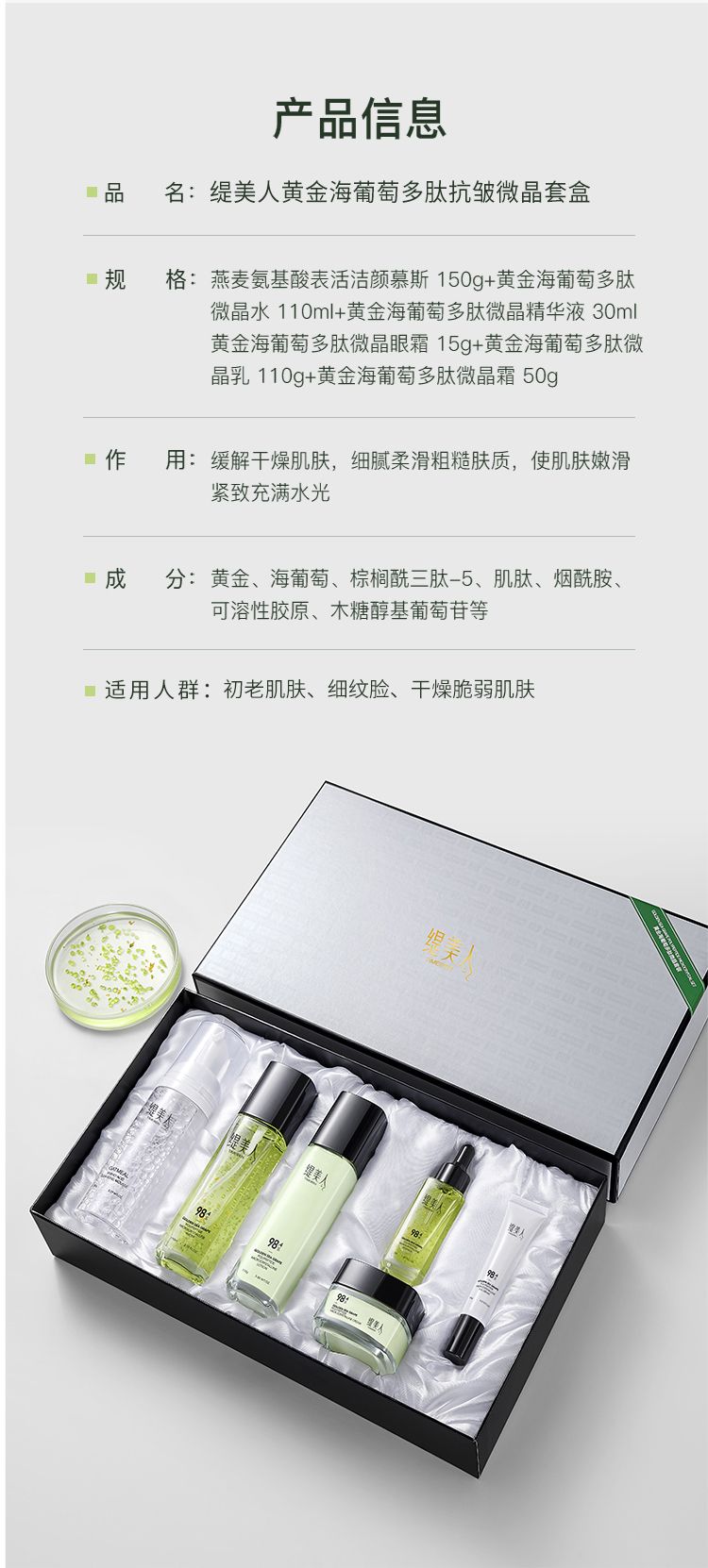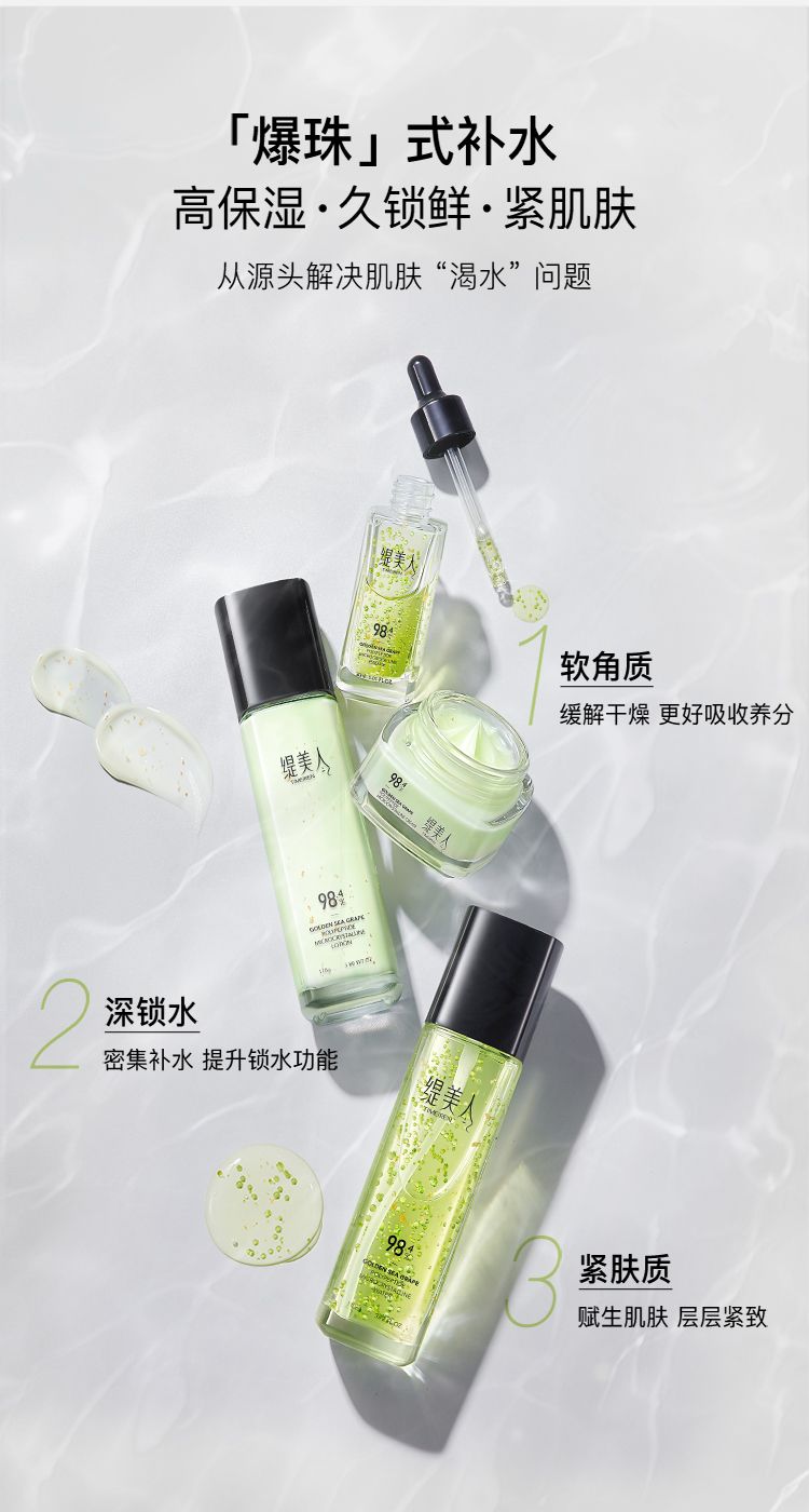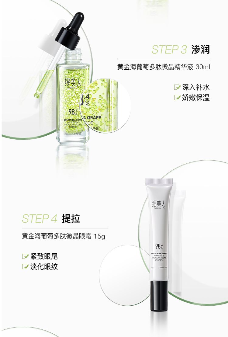 商品名称:缇美人 黄金海葡萄多肽抗皱微晶套盒补水保湿亮肤六件套 黄金海葡萄多肽抗皱微晶套盒