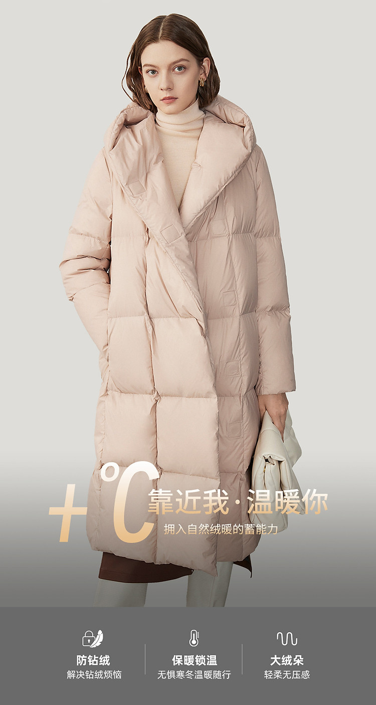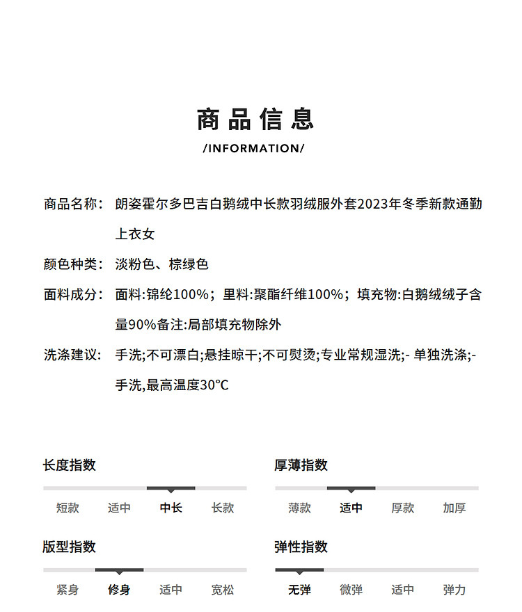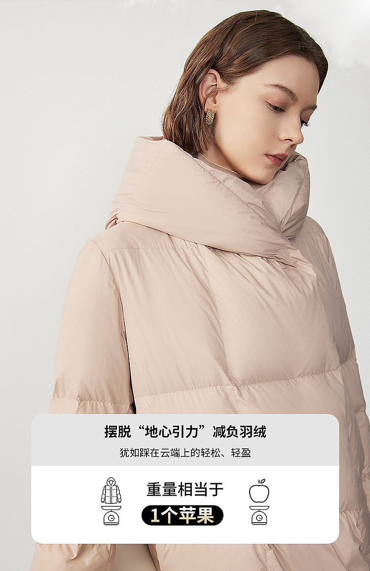 商品名称:霍尔多巴吉白鹅绒中长款羽绒服外套冬季通勤上衣女 445017
