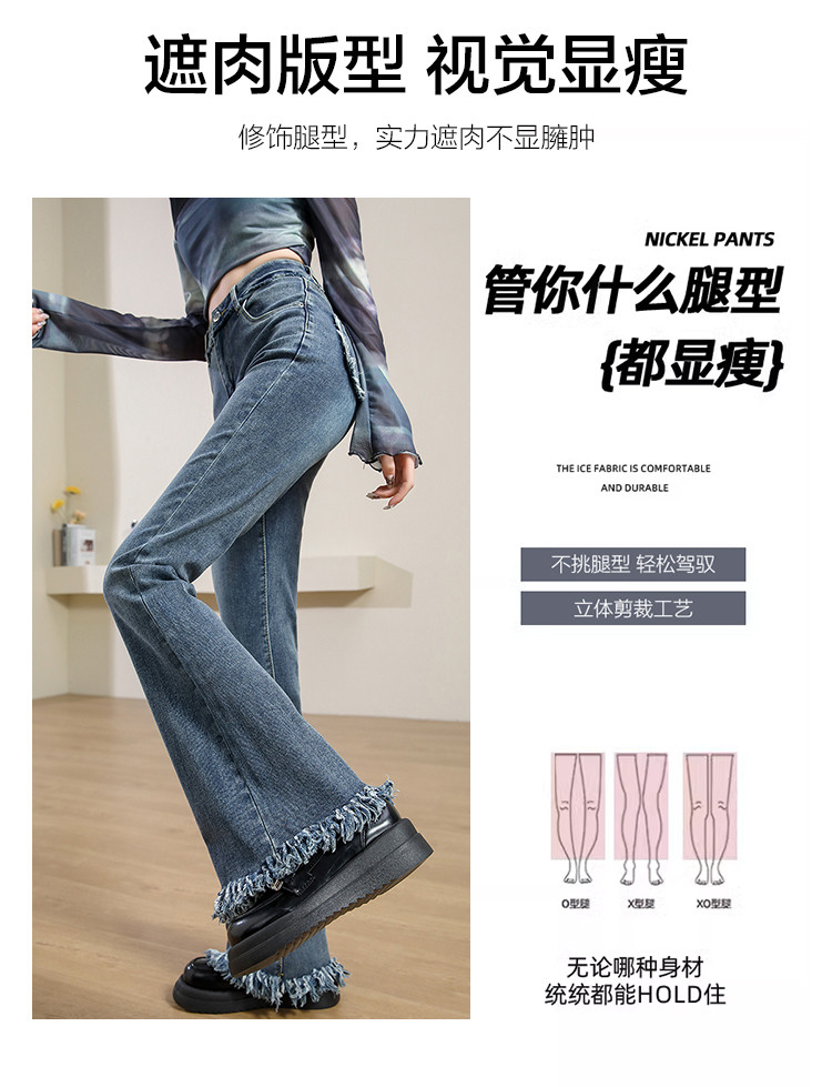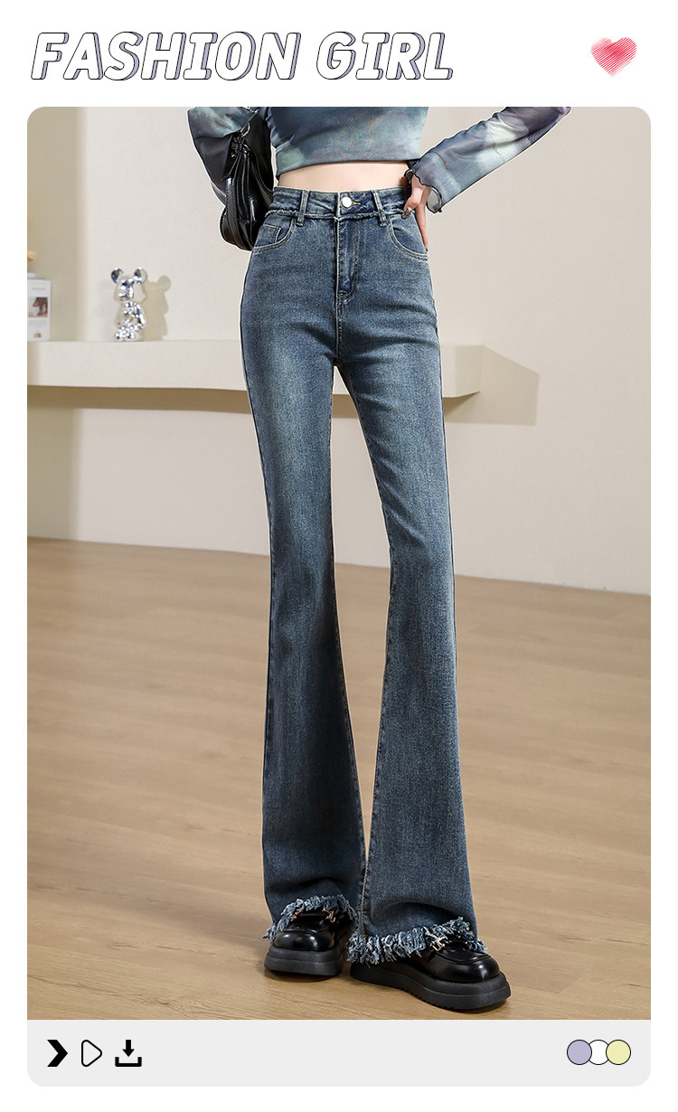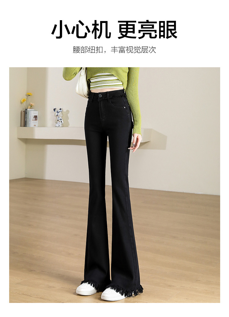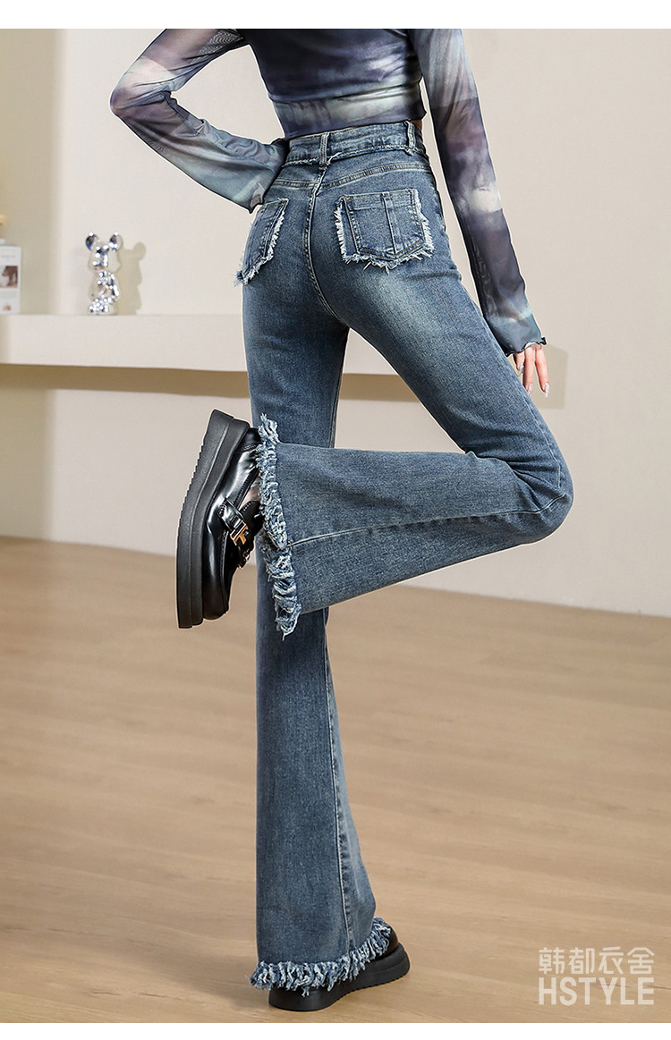 【毛边喇叭裤】春秋款女式高腰修身显瘦时尚后口袋毛边设计牛仔裤 964683