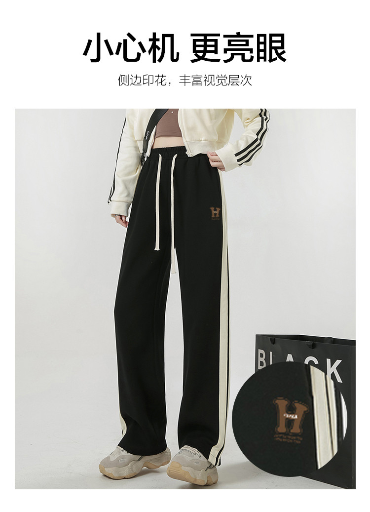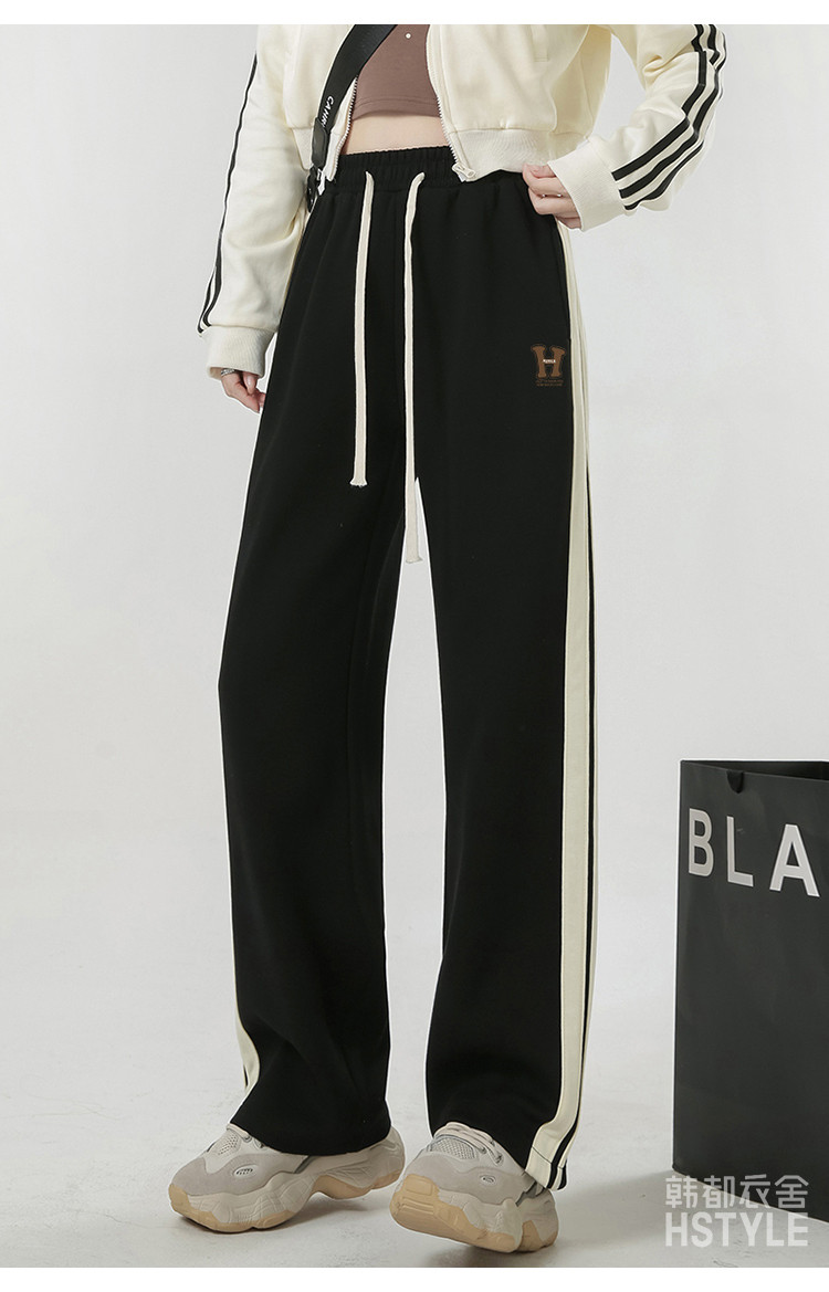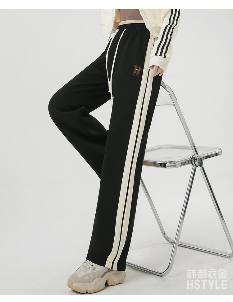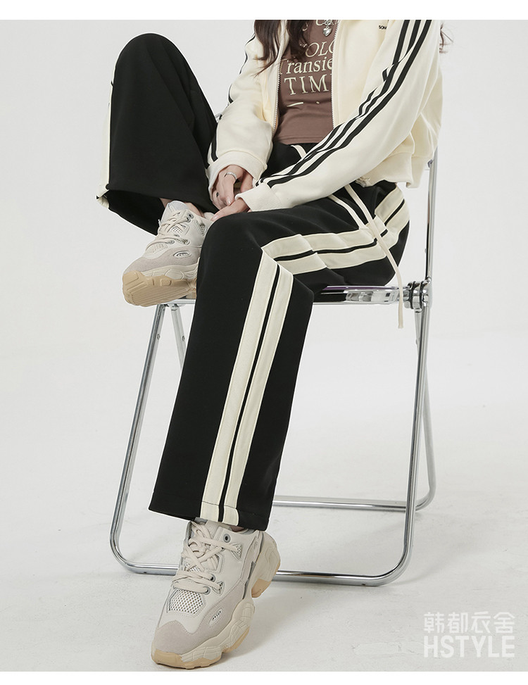 商品名称:【简约百搭】春季款女式日常通勤侧边双条纹撞色运动直筒休闲裤 439179