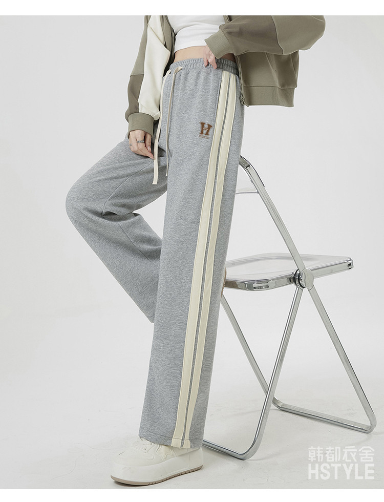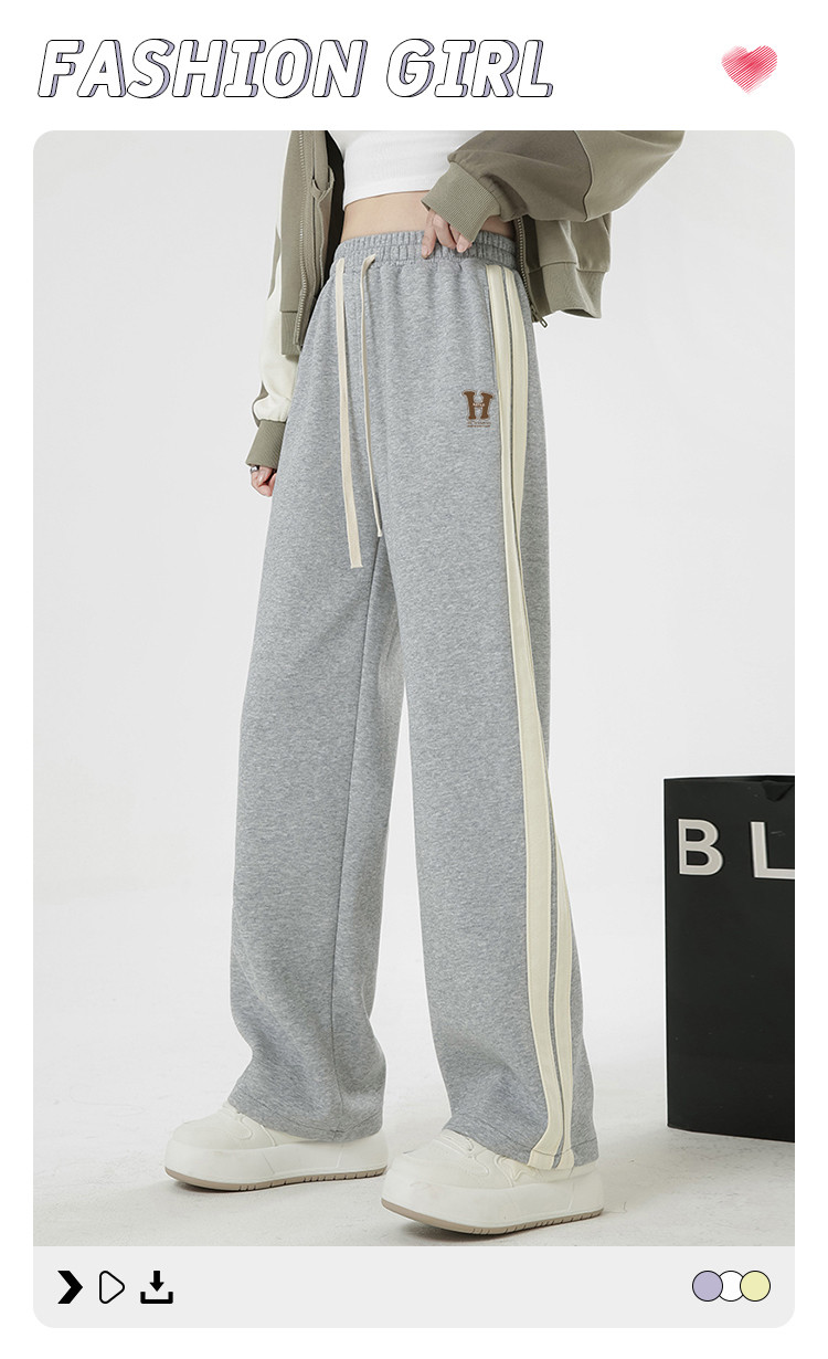 【简约百搭】春季款女式日常通勤侧边双条纹撞色运动直筒休闲裤 439179