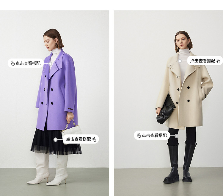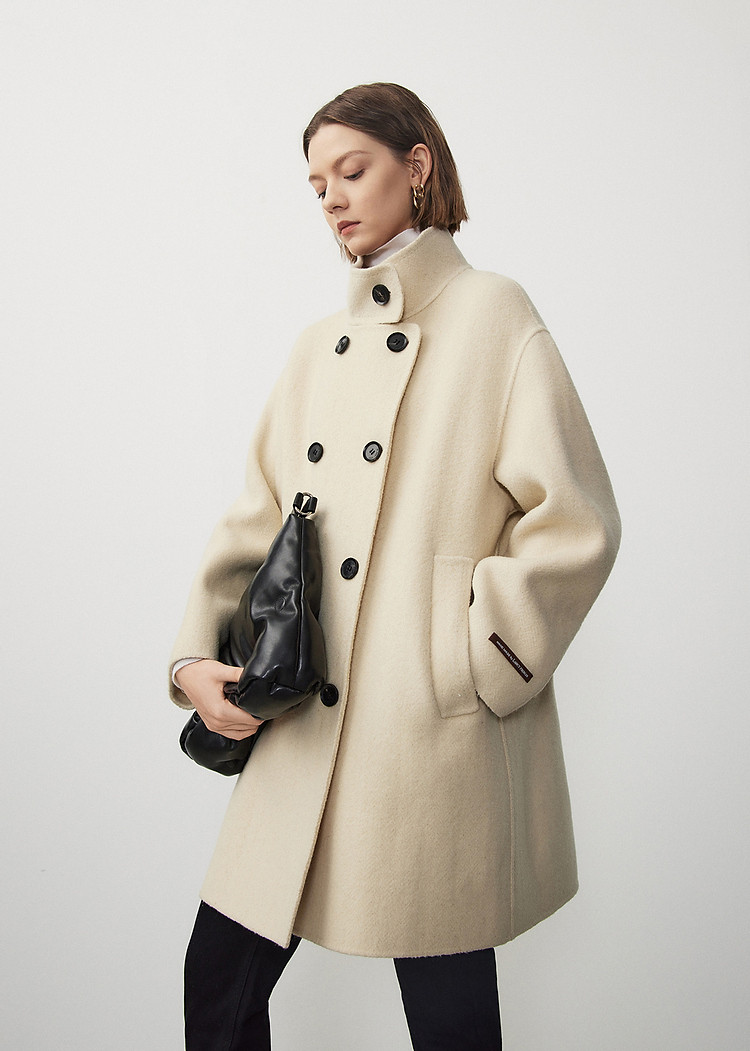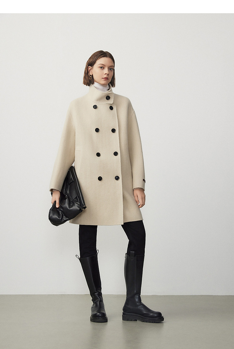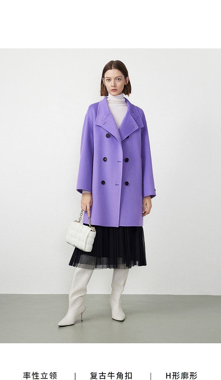 羊毛中长款加厚正肩双面呢毛呢大衣冬季外套上衣女 314905