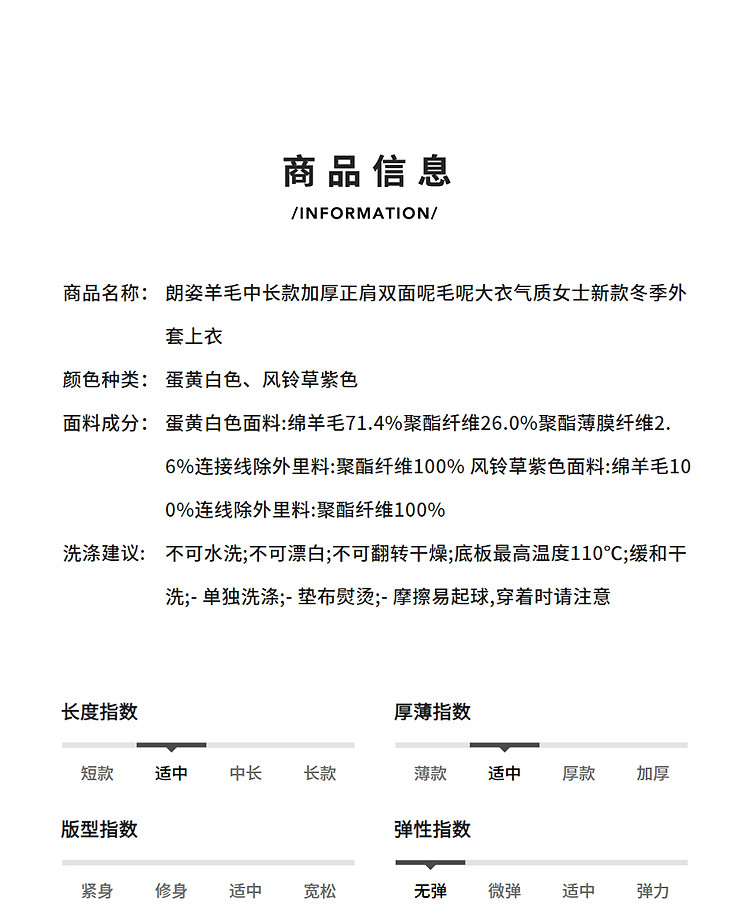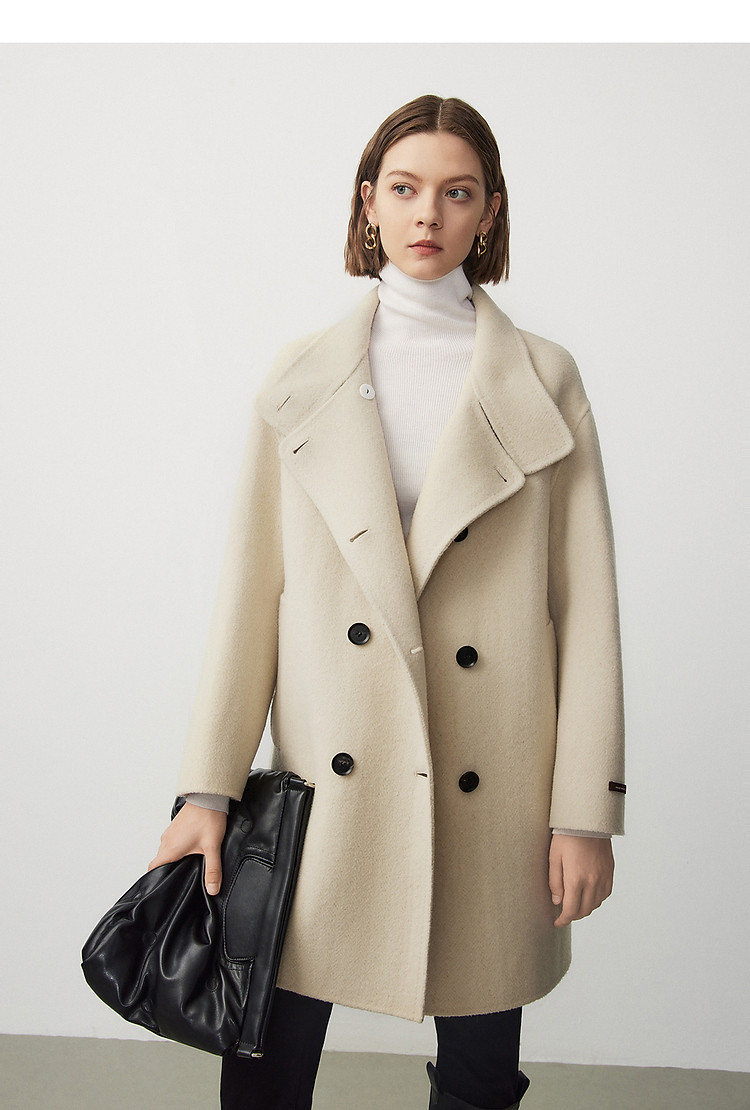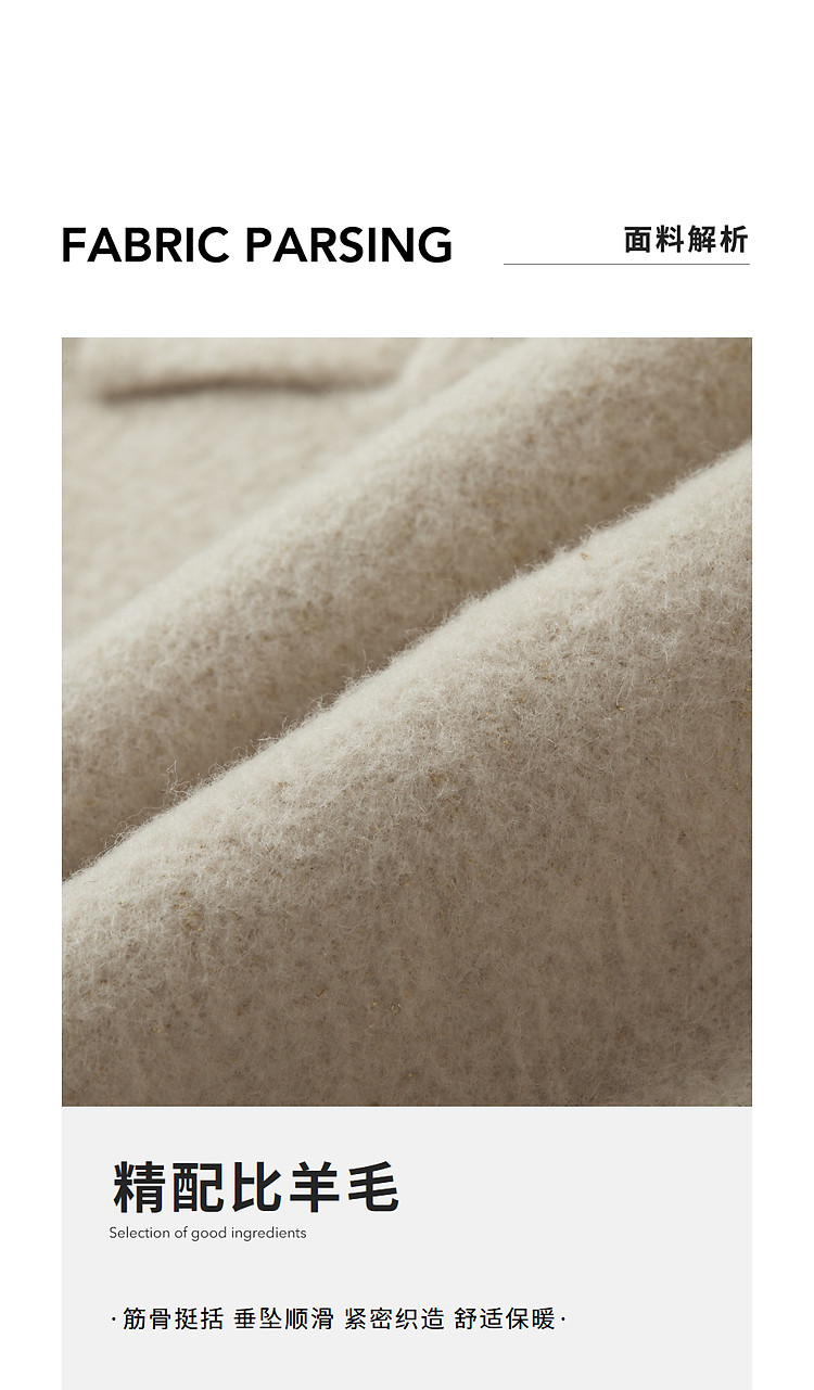 商品名称:羊毛中长款加厚正肩双面呢毛呢大衣冬季外套上衣女 314905