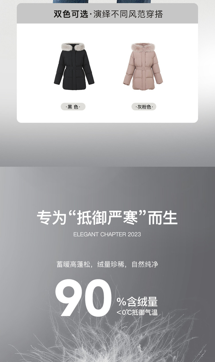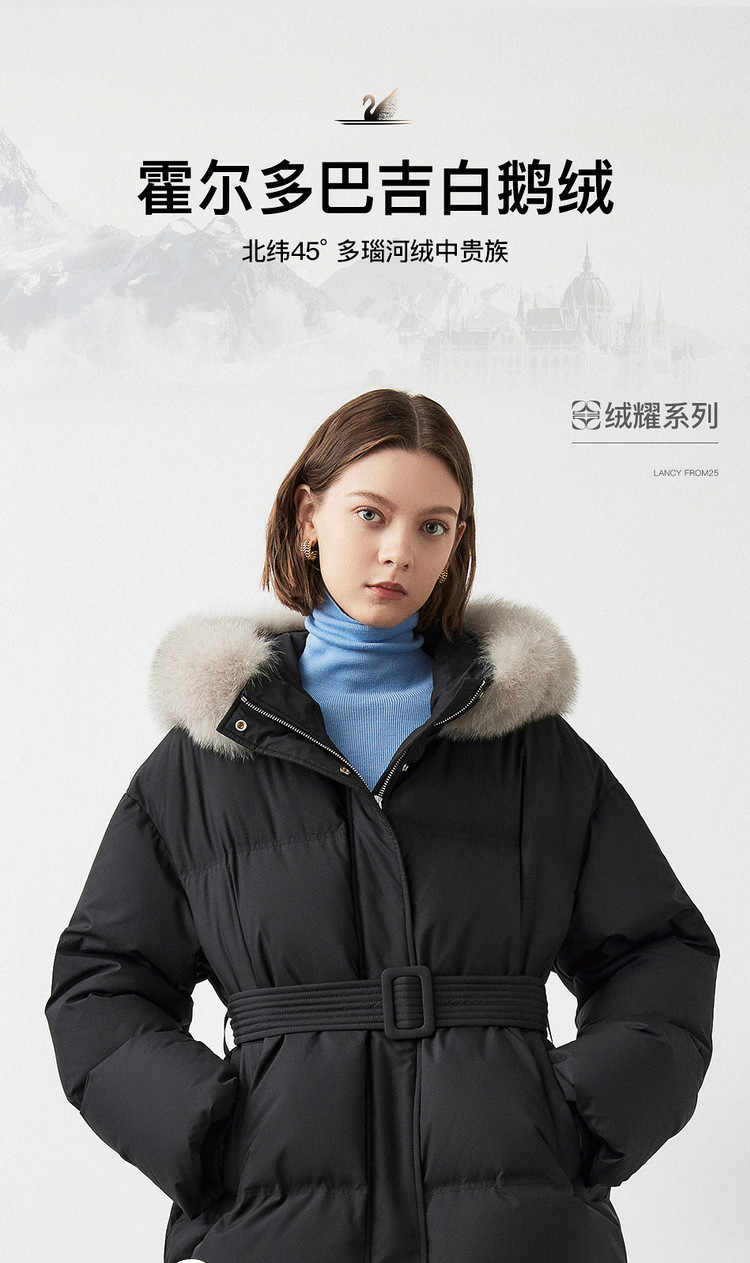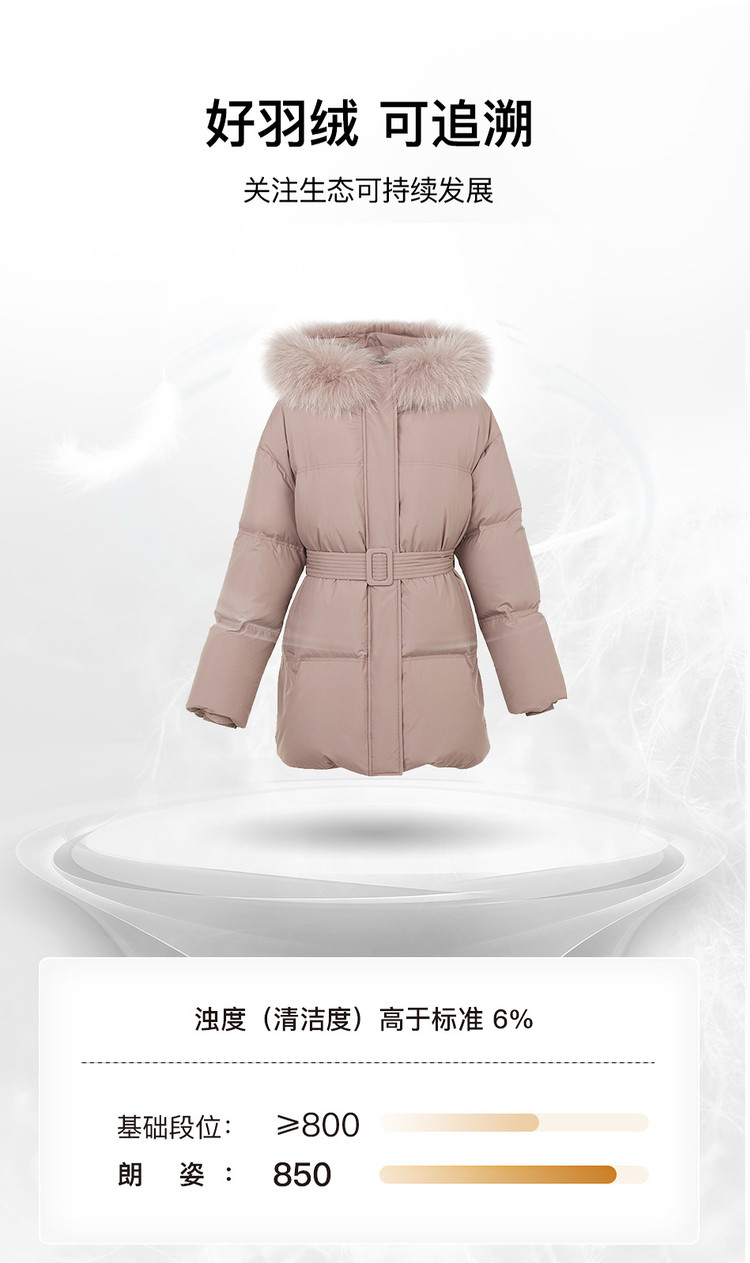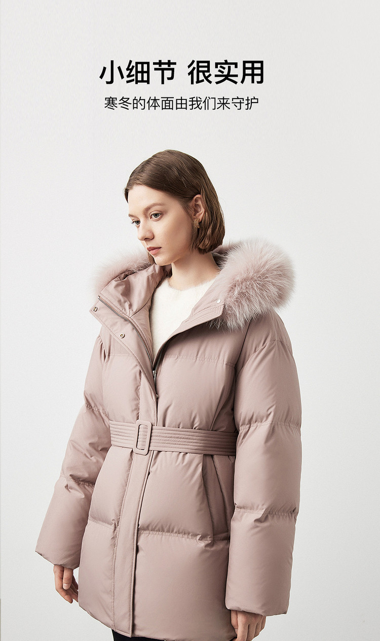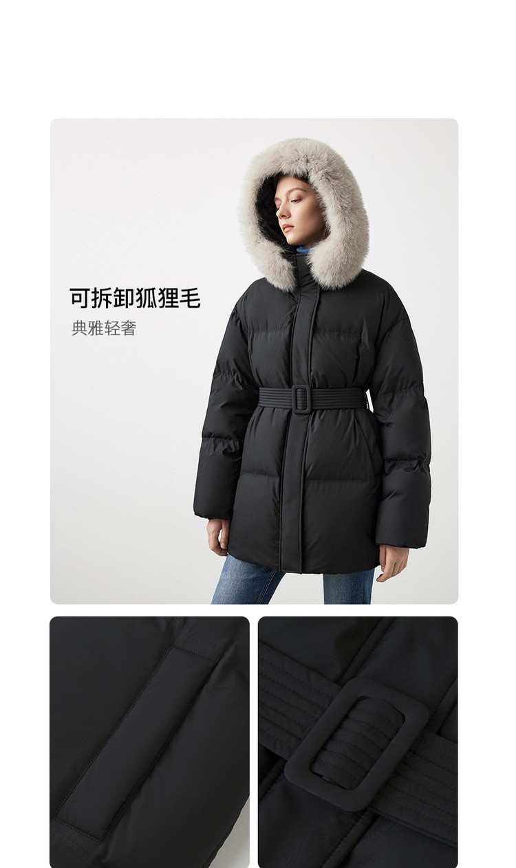 商品名称:霍尔多巴吉白鹅绒可拆卸狐狸毛领加厚羽绒服外套冬季 199257