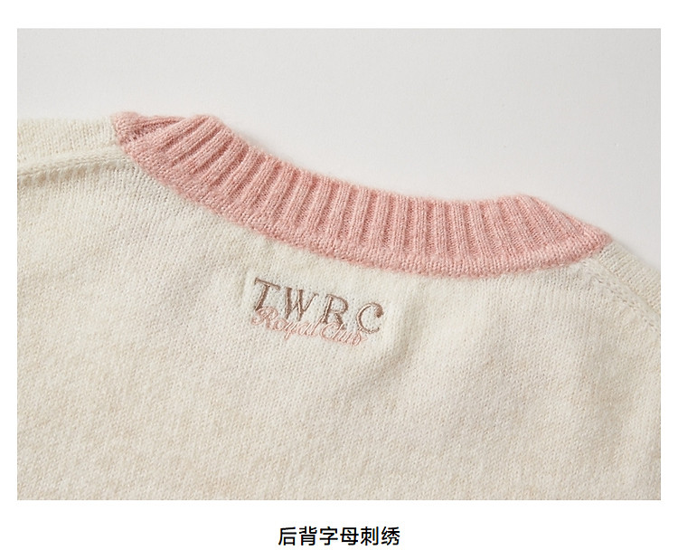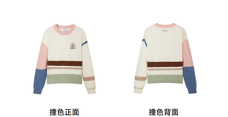 商品名称:小熊春秋款设计感马卡龙撞色毛衣圆领针织衫上衣女装 858177