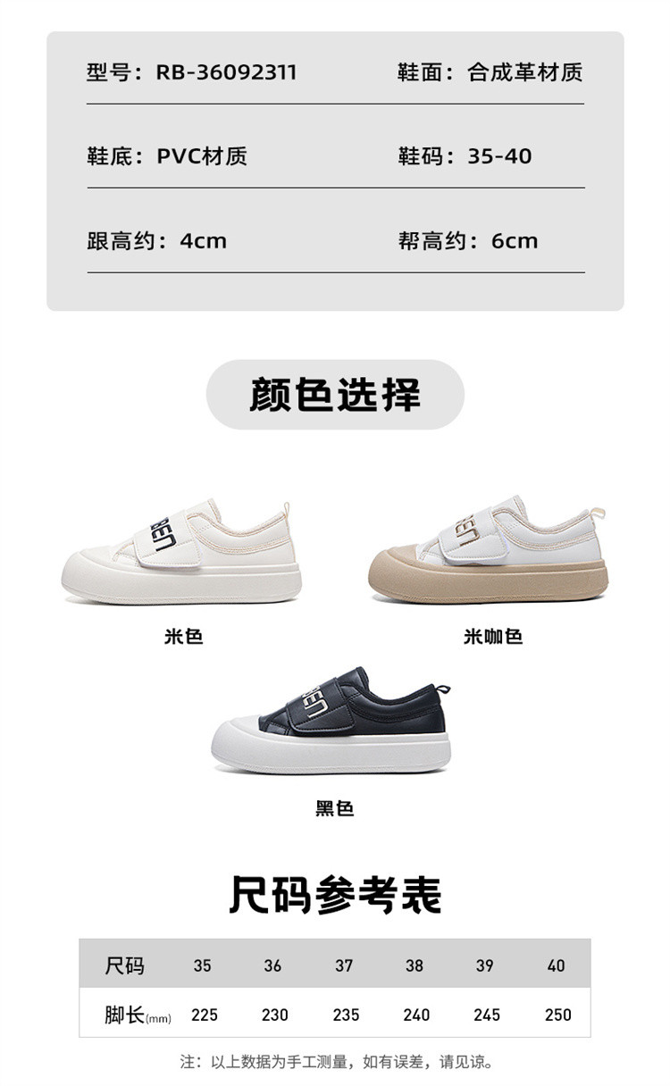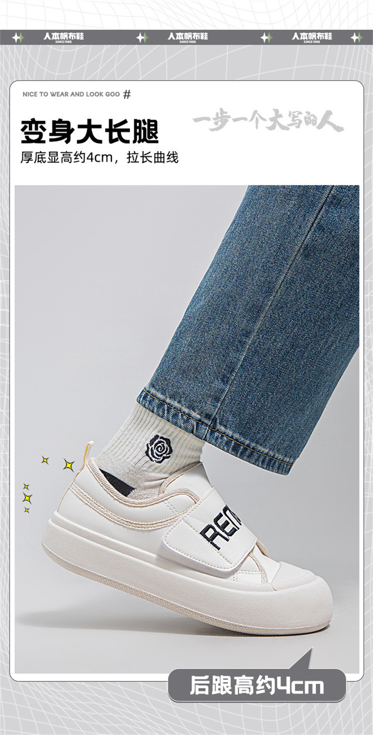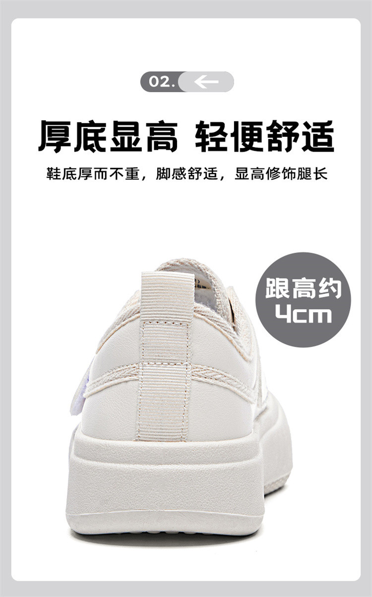 商品名称:厚底魔术贴小白鞋女学生厚底显高休闲百搭板鞋女学院风轻便运动鞋 713479