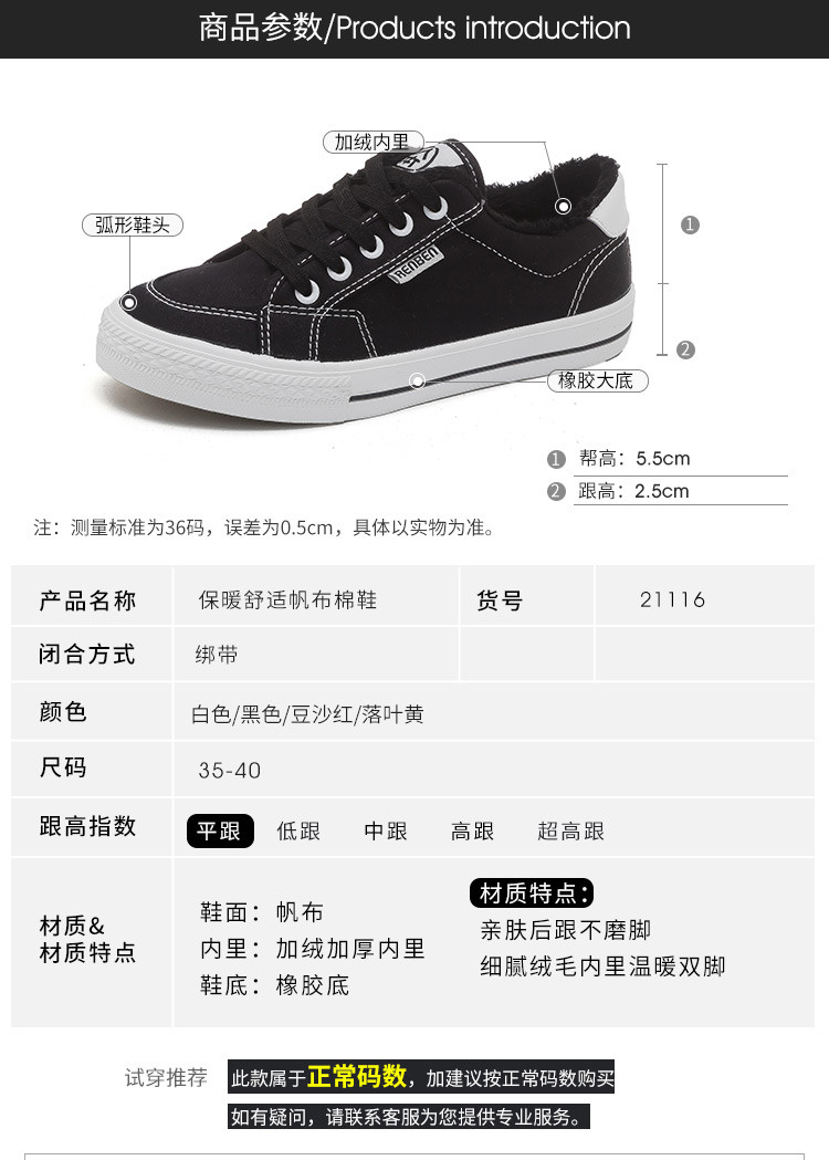 商品名称:加绒保暖棉鞋女冬季低帮加厚东北二棉鞋学生百搭休闲轻便帆布鞋女 600711