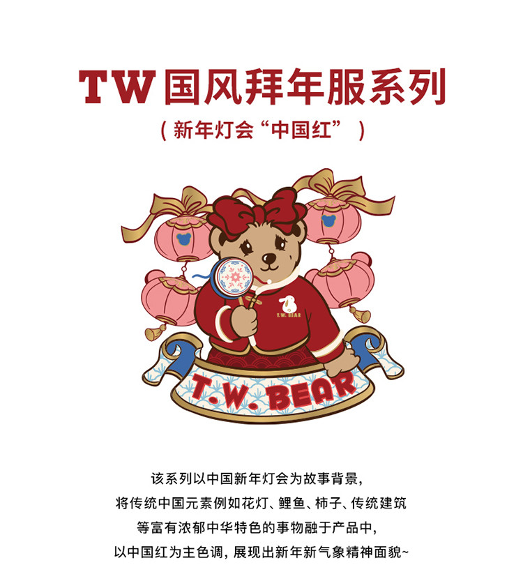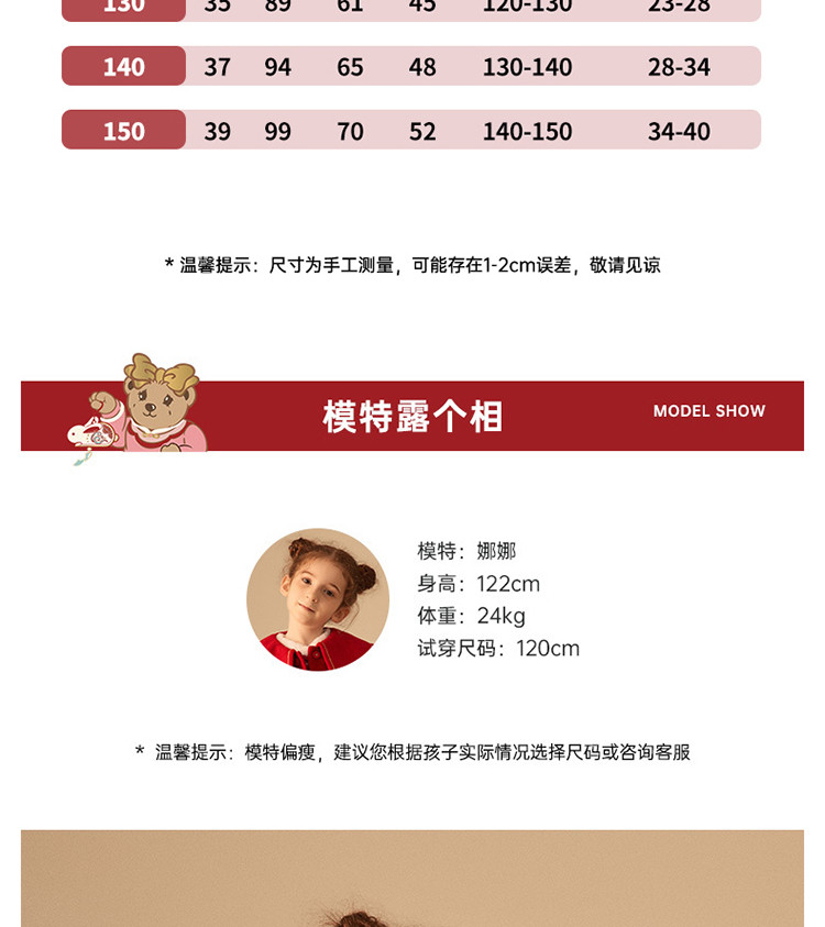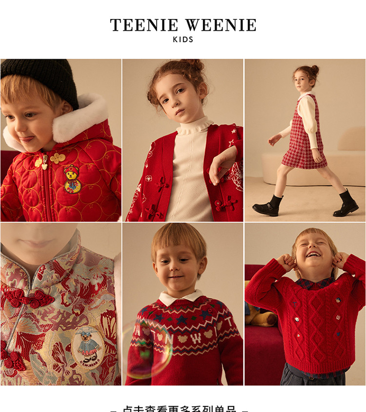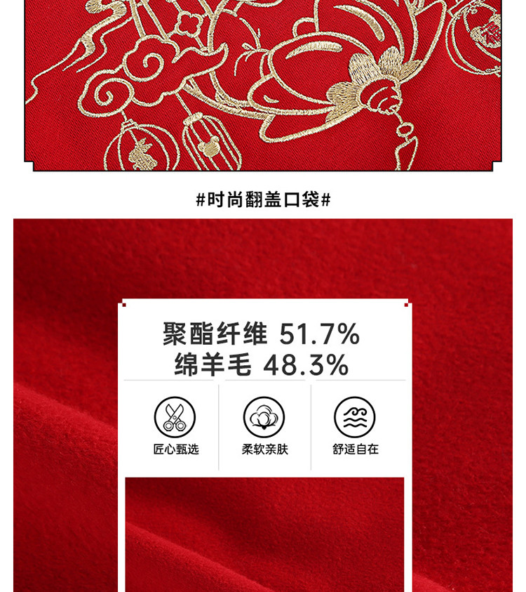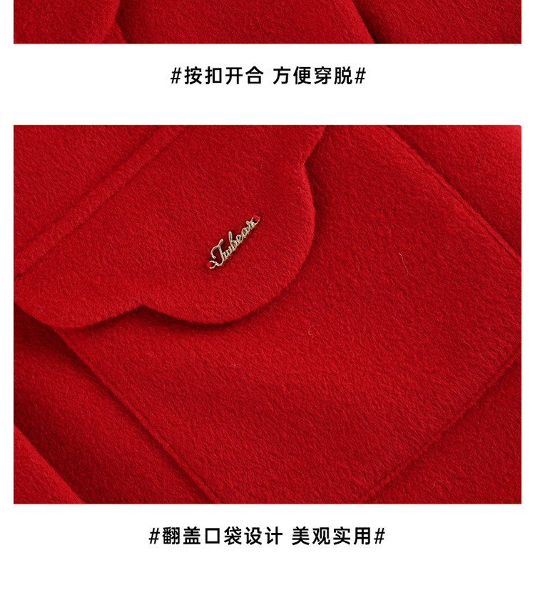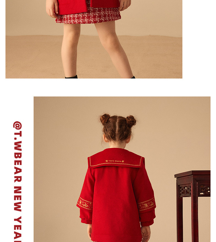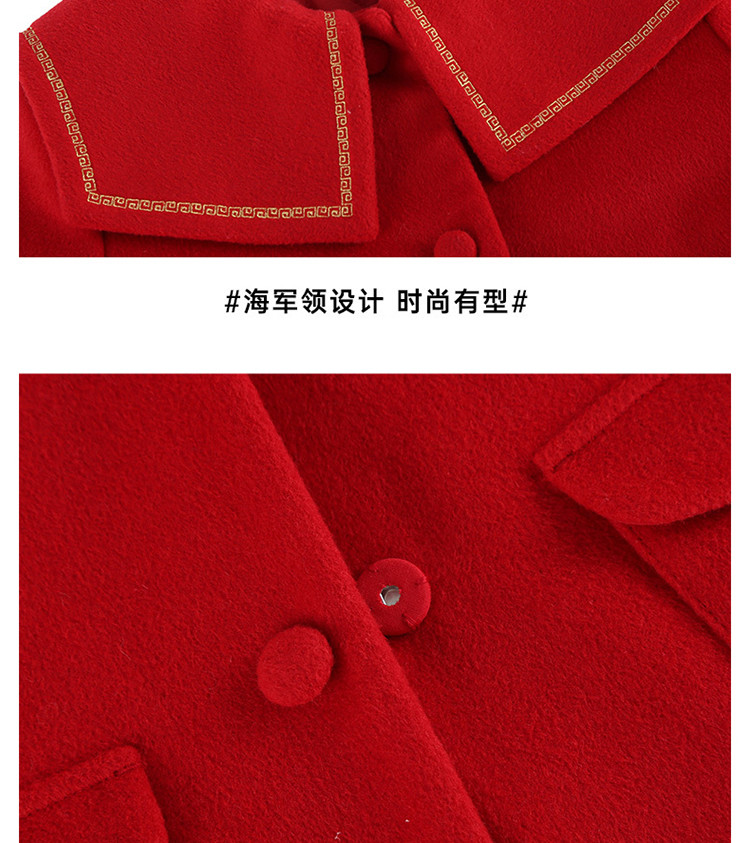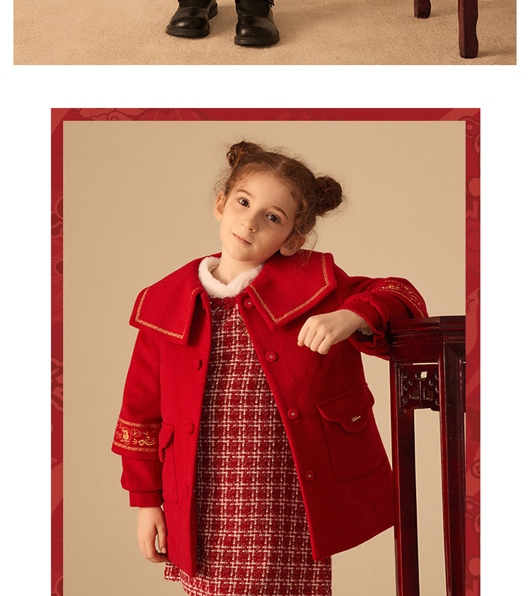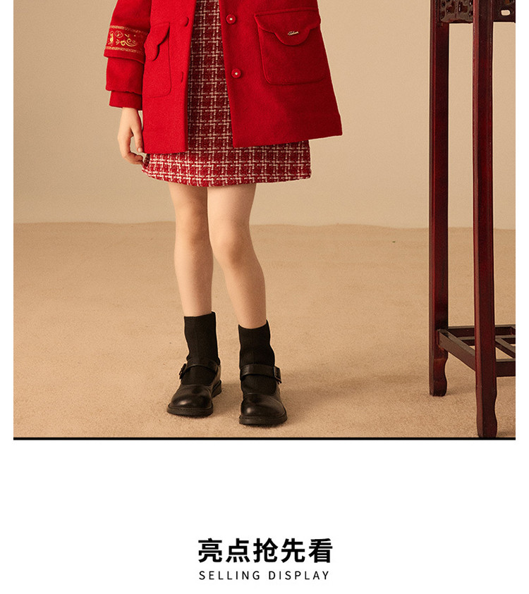 商品名称:【国风】小熊童装红色女童秋季中国红翻领毛呢大衣 445057