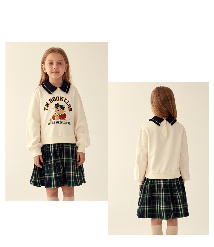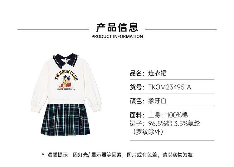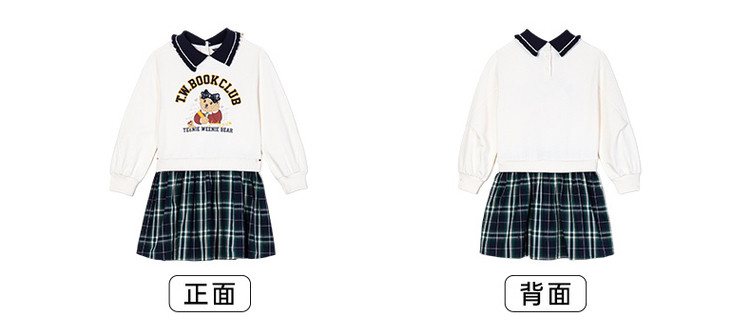 商品名称:小熊童装女童春季款拼接格纹卫衣式连衣裙 757441