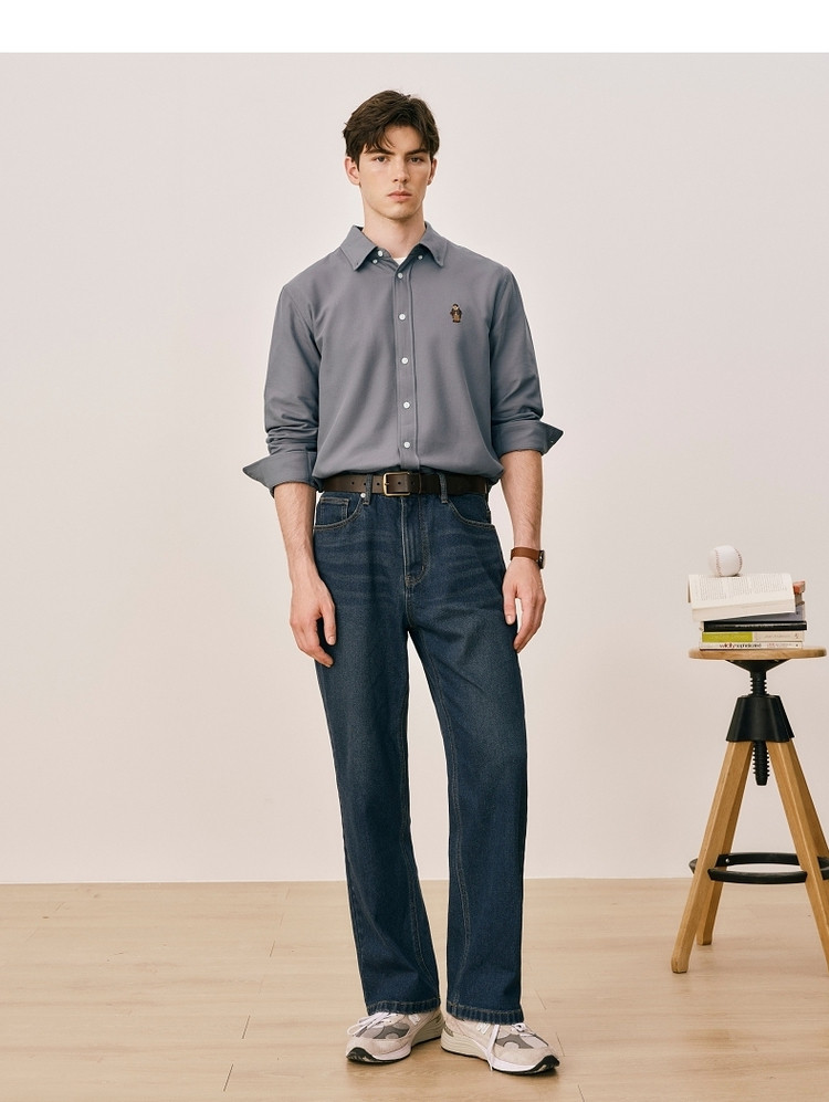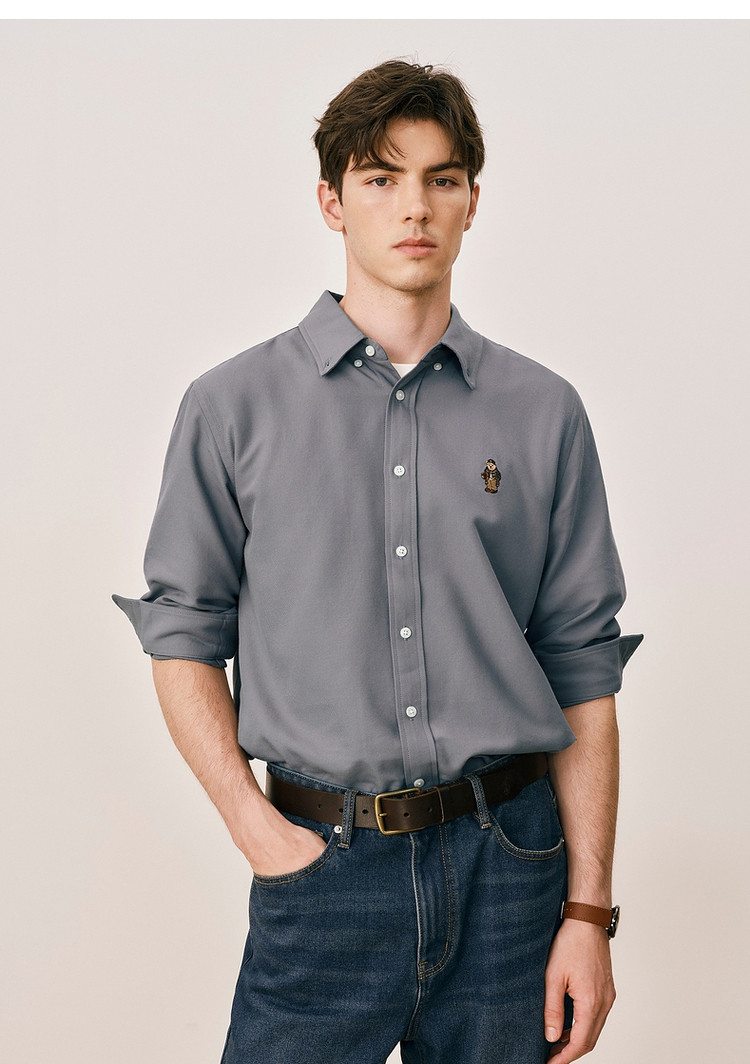 衬衫男长袖春秋款基础款纯色刺绣衬衣男长袖衬衫 028609