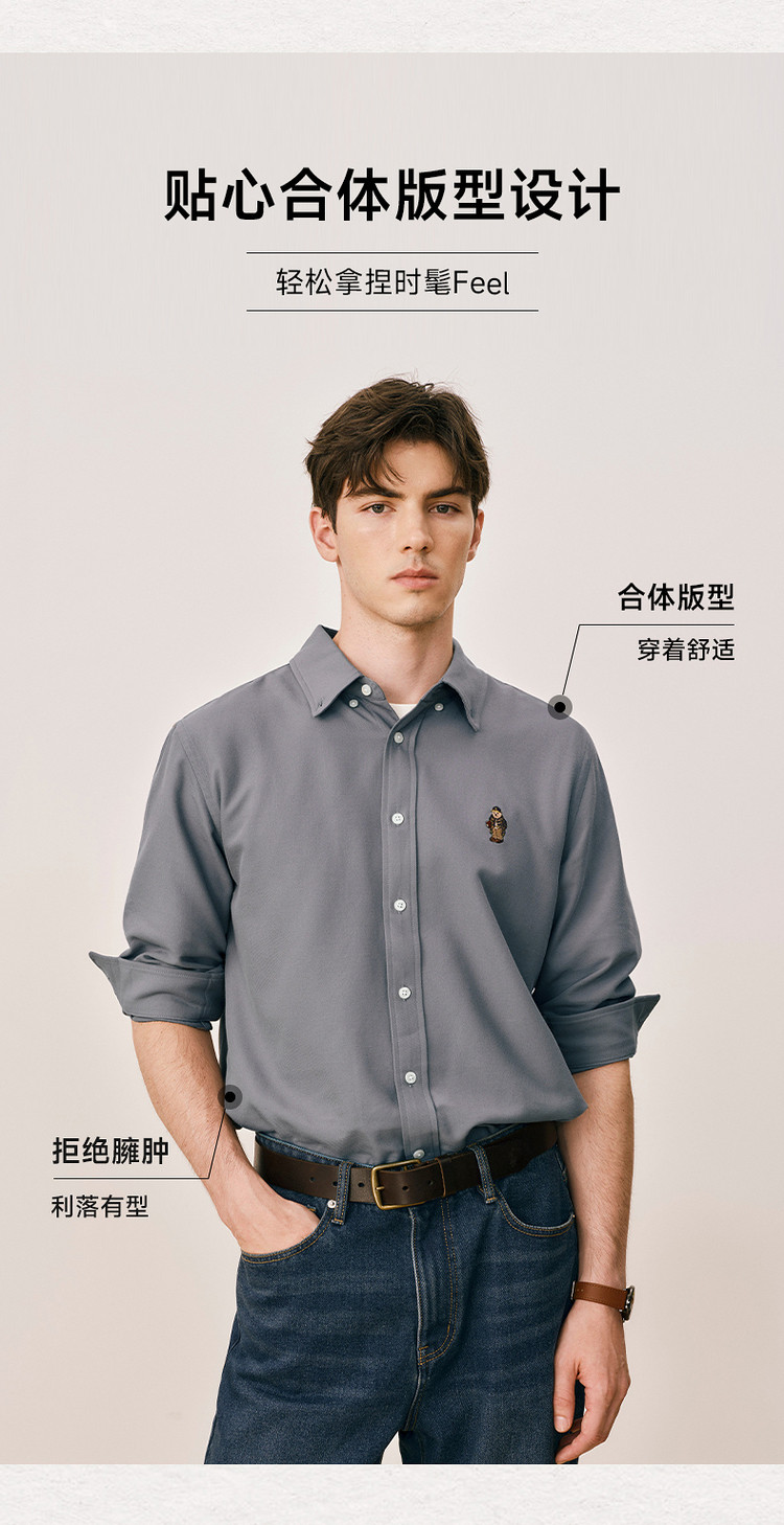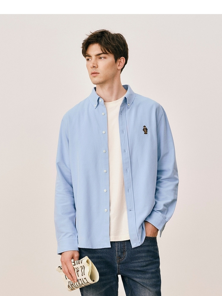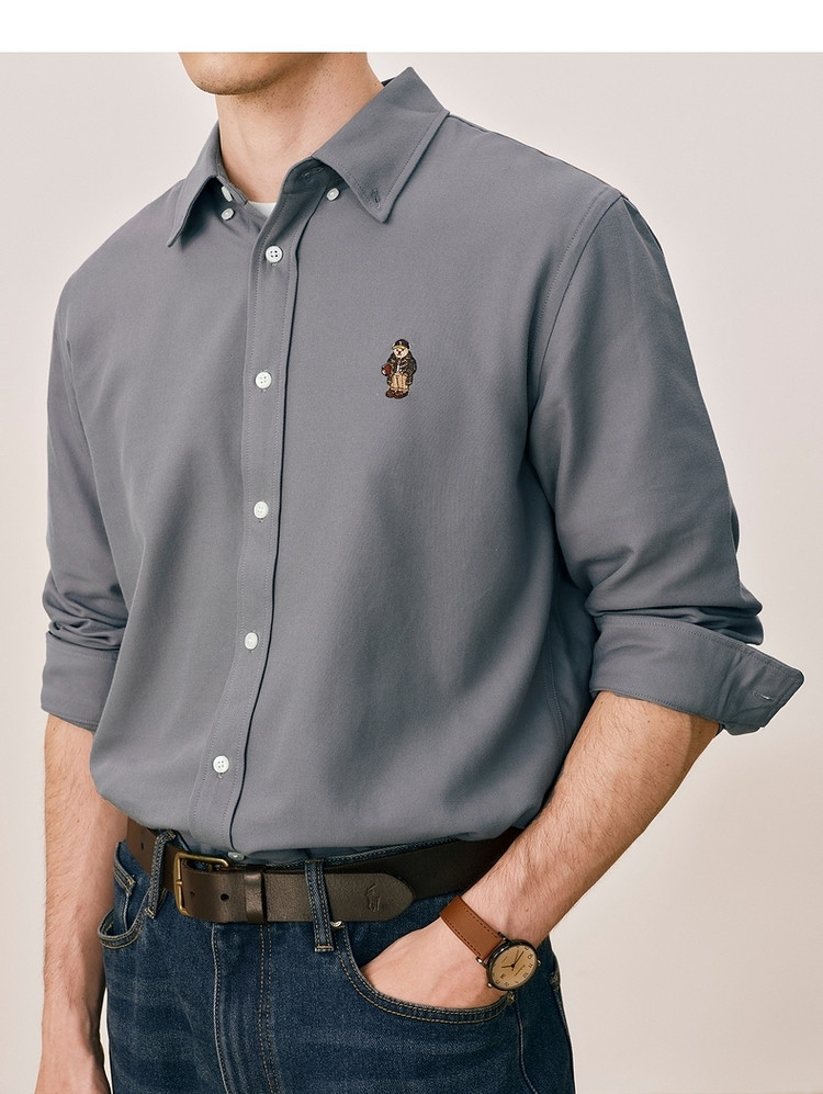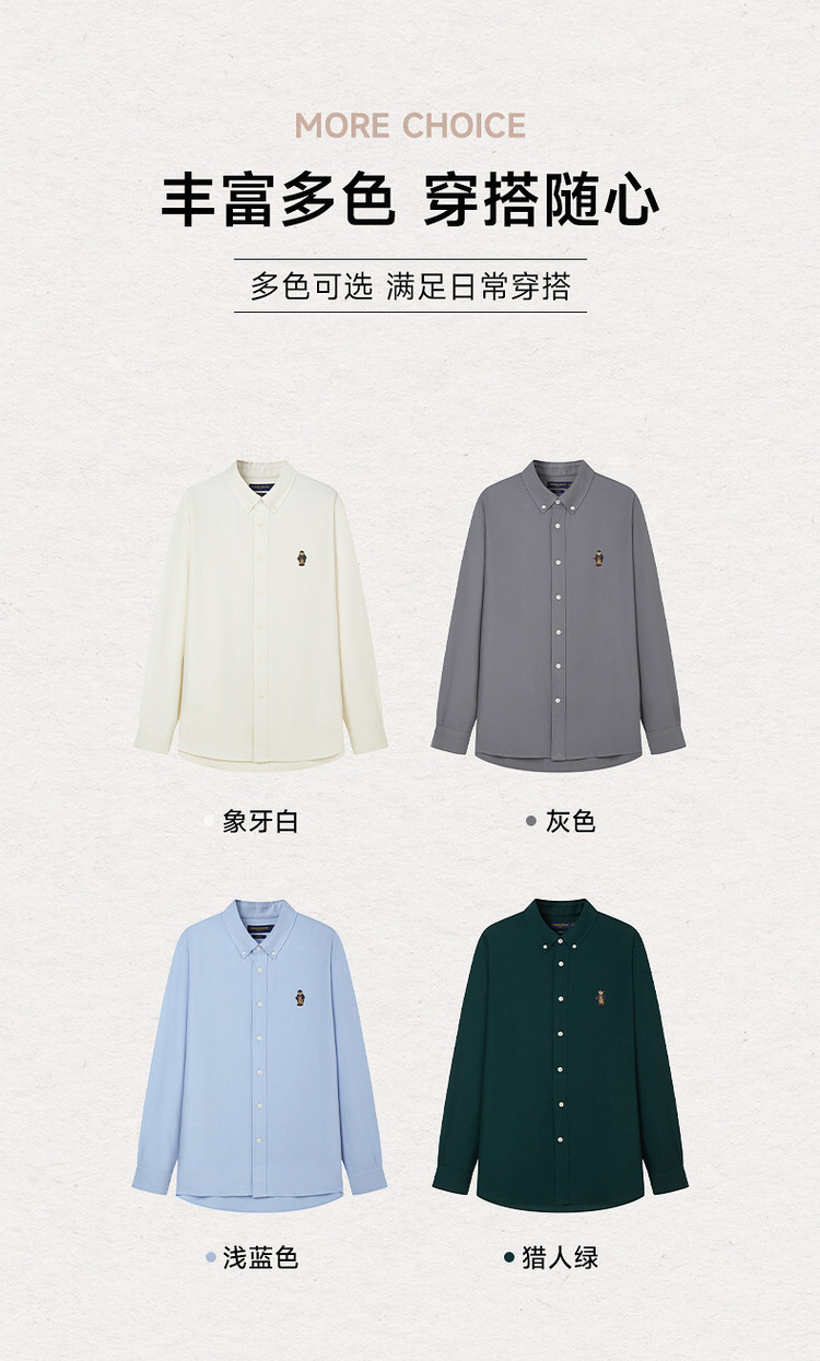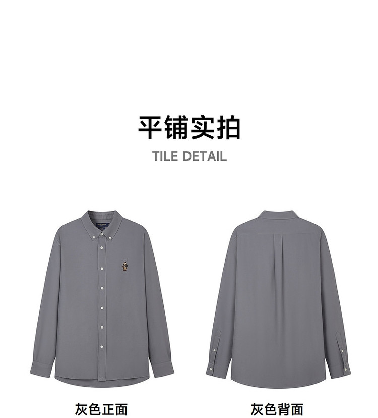 商品名称:衬衫男长袖春秋款基础款纯色刺绣衬衣男长袖衬衫 028609
