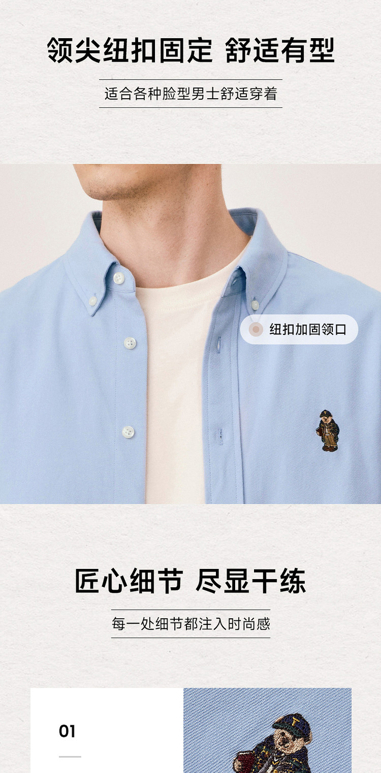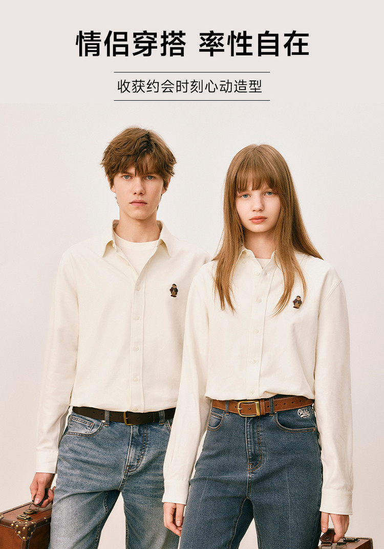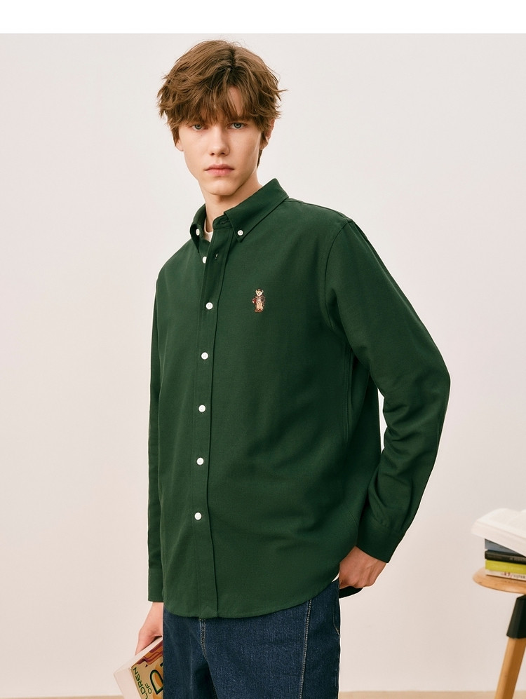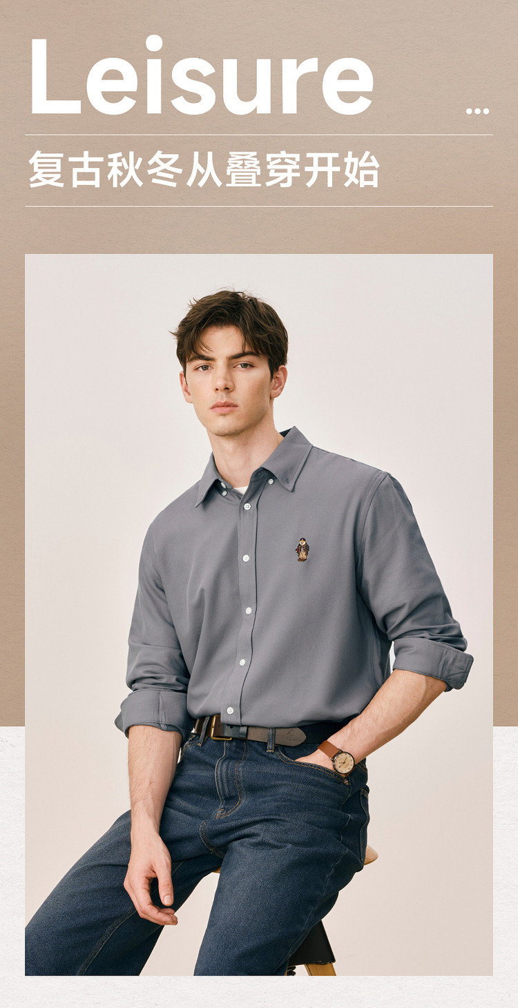 商品名称:衬衫男长袖春秋款基础款纯色刺绣衬衣男长袖衬衫 028609