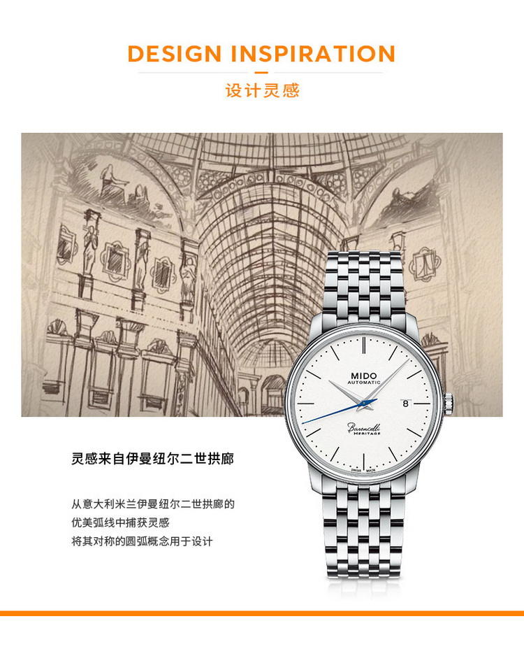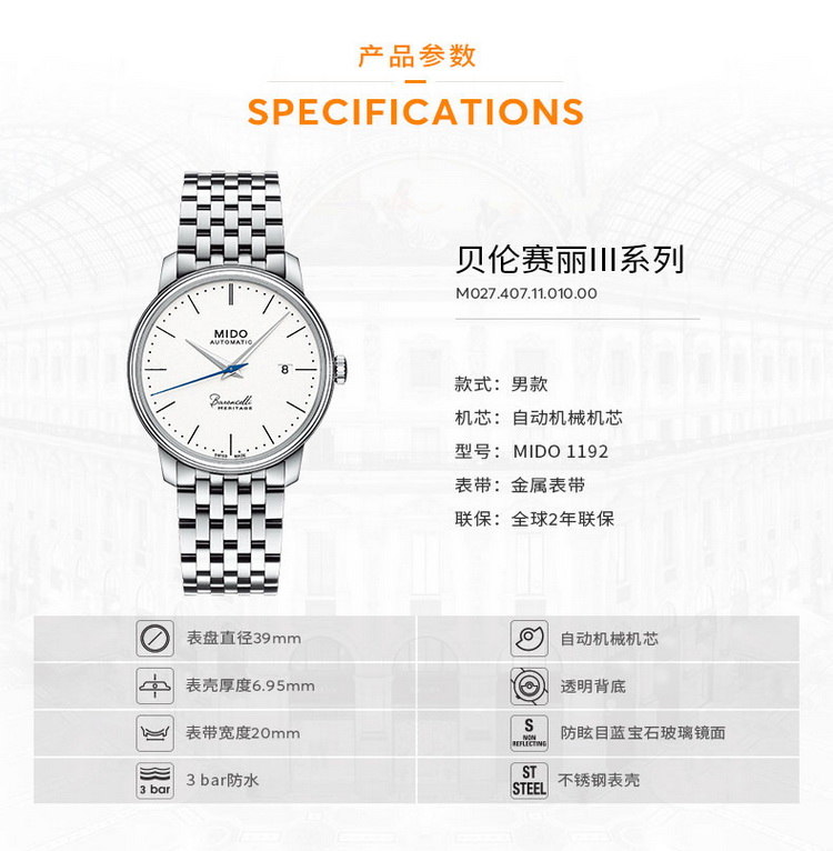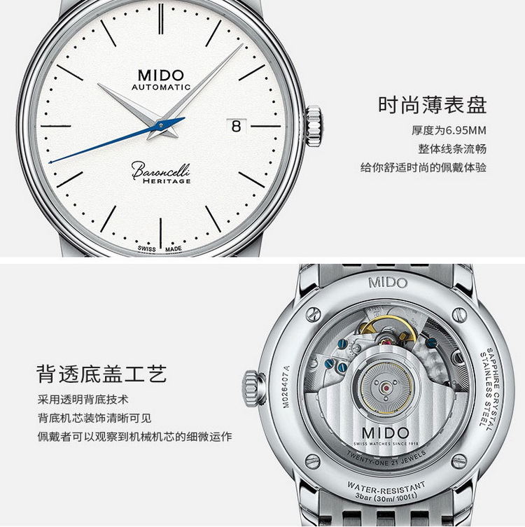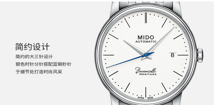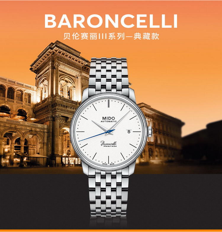 商品名称:MIDO美度 贝伦赛丽III系列 超薄机械男表(不支持无理由退换货)