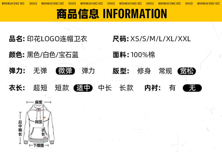 商品名称:Dickies印花毛圈连帽宽松休闲卫衣 DK011043 542032