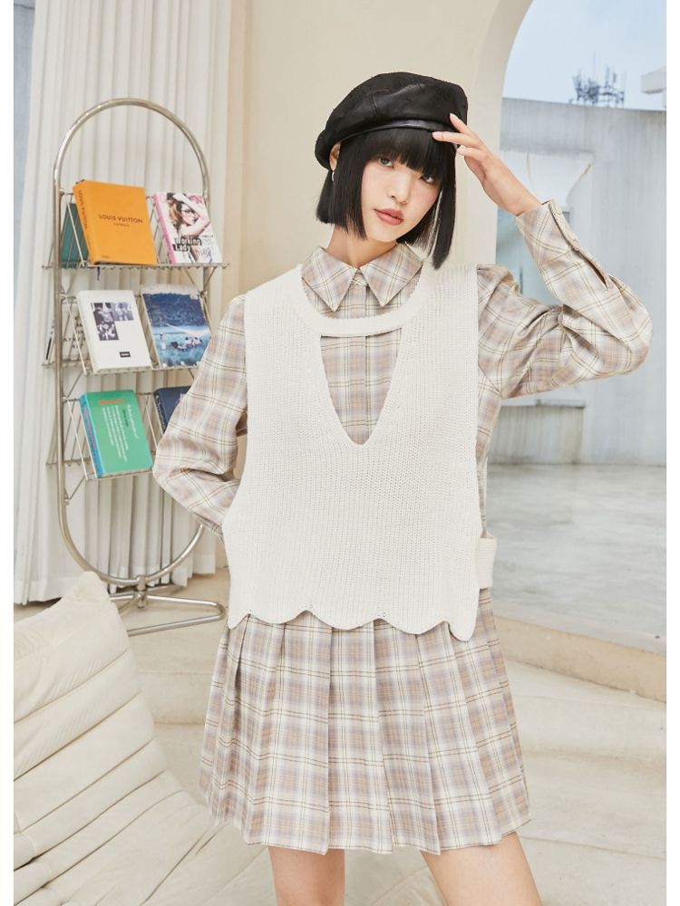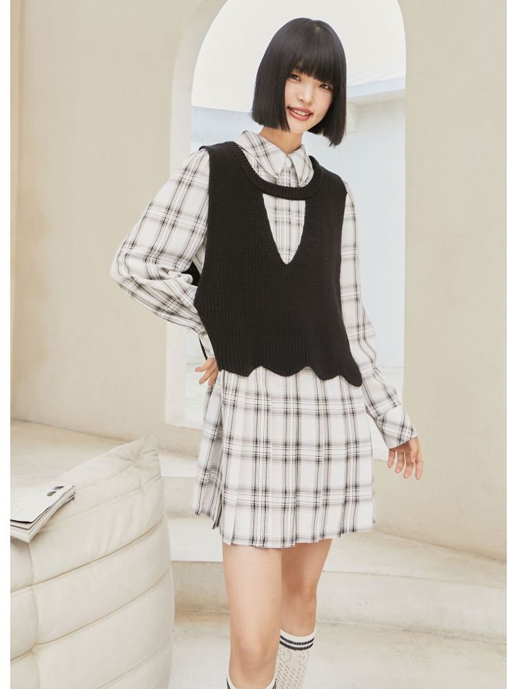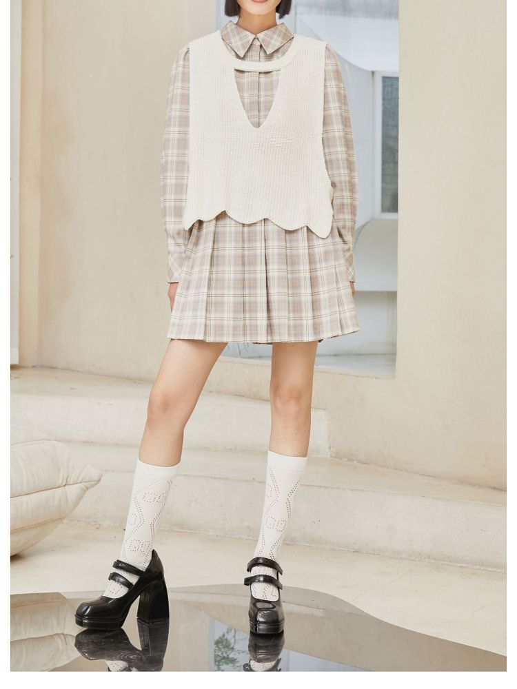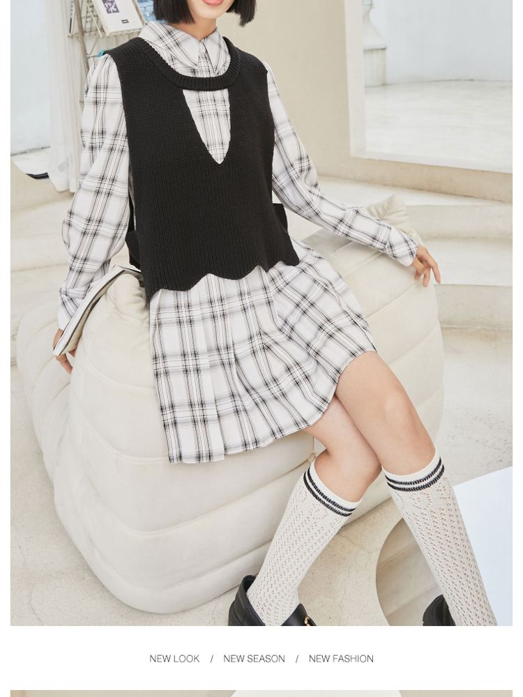 商品名称:【福利款】夏季泡泡袖学院风两件套连衣裙女 680090