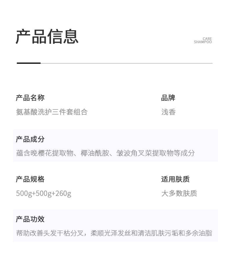 商品名称:浅香 植物氨基酸洗沐套装 500g+500g+260g