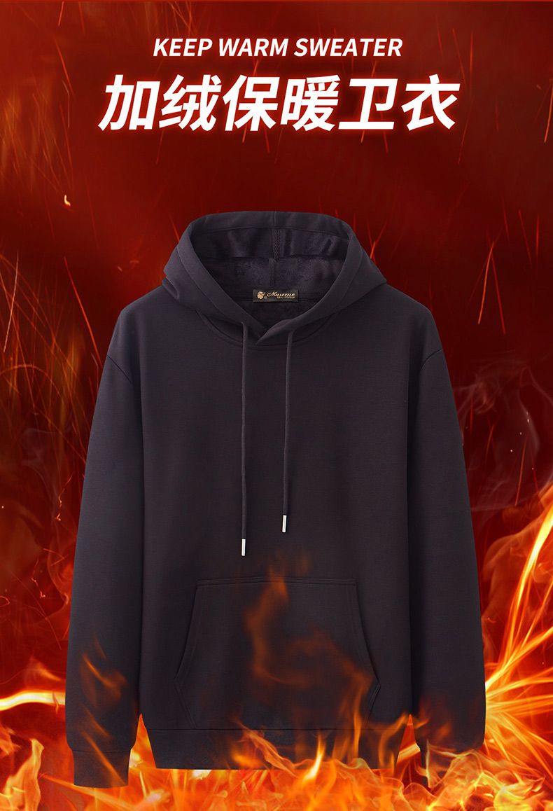 曼西尔奴男士宽松休闲连帽加绒保暖百搭纯色卫衣24217168TM