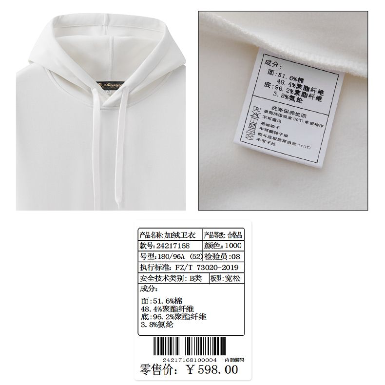 商品名称:曼西尔奴男士宽松休闲连帽加绒保暖百搭纯色卫衣24217168TM