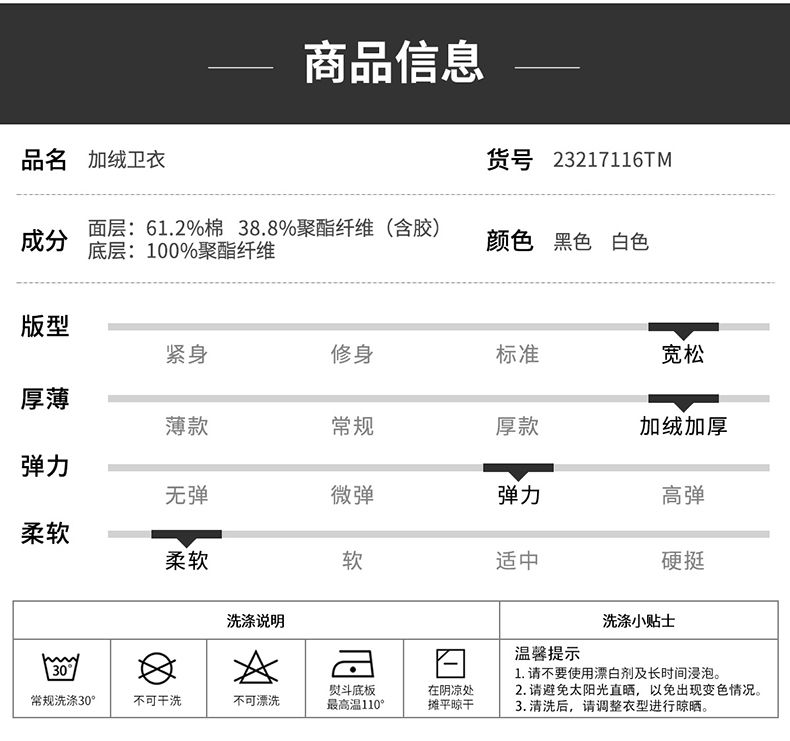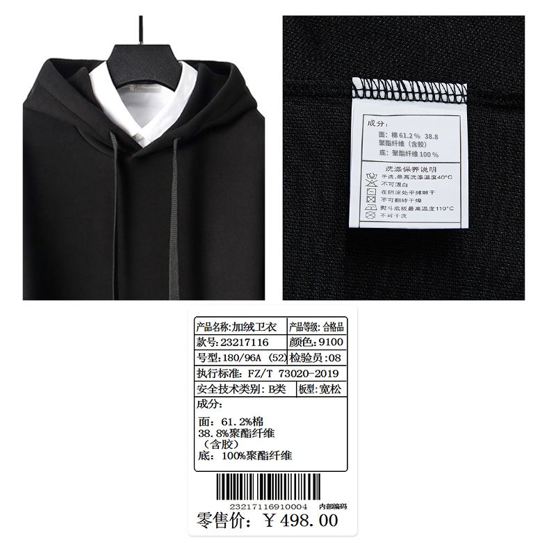 商品名称:曼西尔奴男士棉质连帽休闲加绒保暖卫衣23217116TM