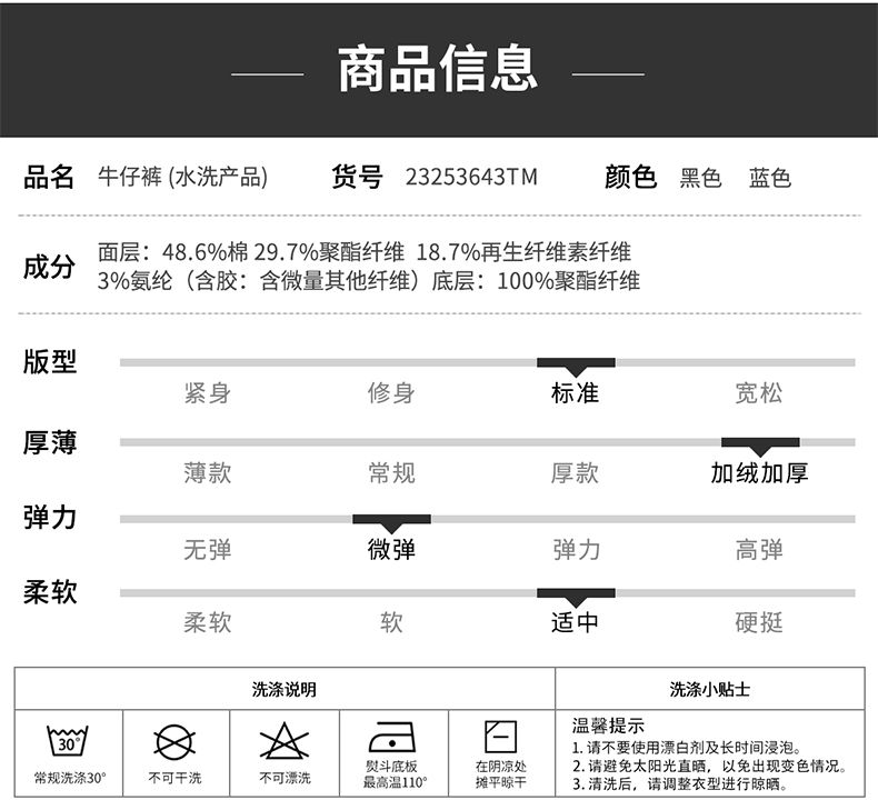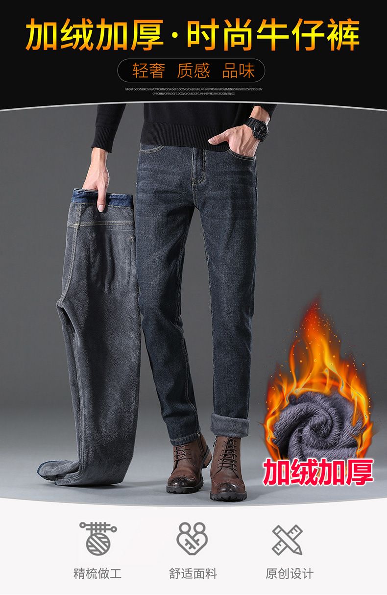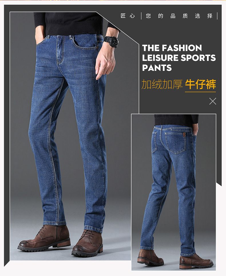 商品名称:曼西尔奴男士休闲弹力直筒加绒保暖牛仔裤23253643TM