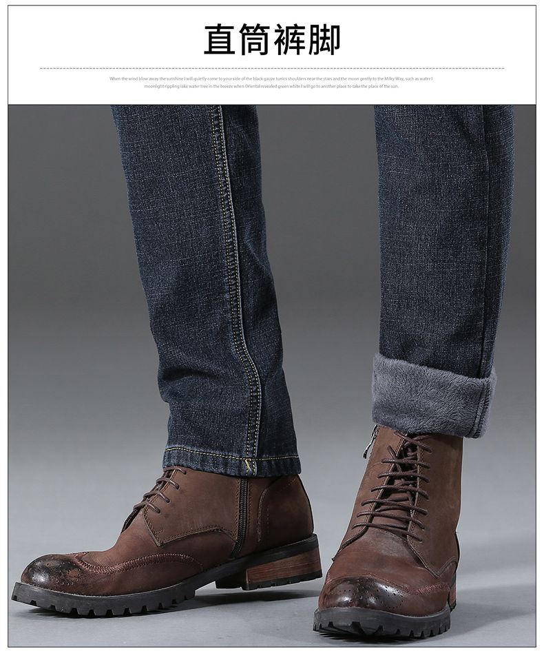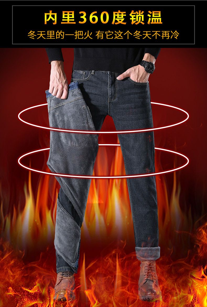 曼西尔奴男士休闲弹力直筒加绒保暖牛仔裤23253643TM