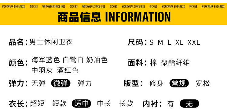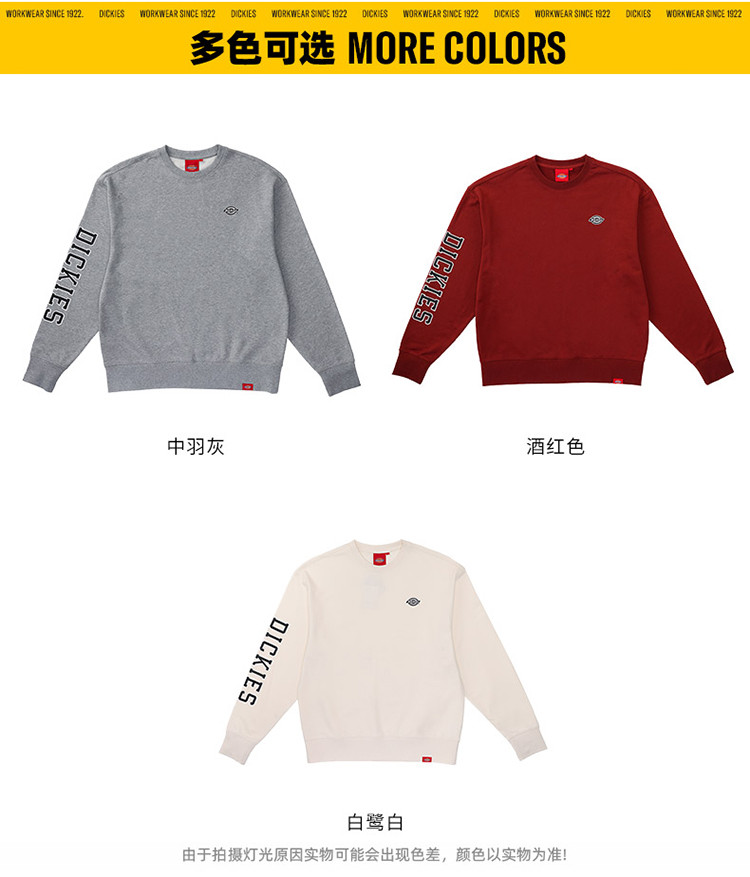 商品名称:Dickies男式右臂字母印花圆领套头卫衣 DK012600 921360